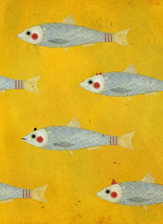 Women's Vintage Fish Sardines Art Print Flowy Clothes