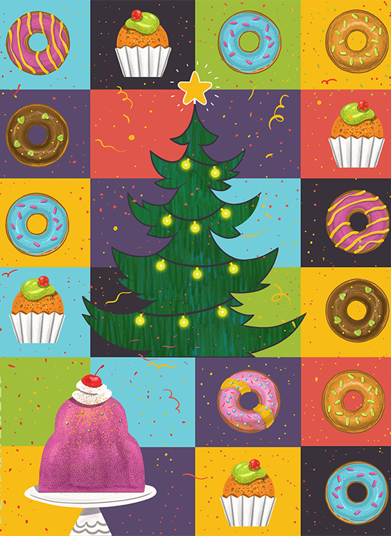 Christmas Fruit Art Print Buttoned V-neck Cardigan Sweater