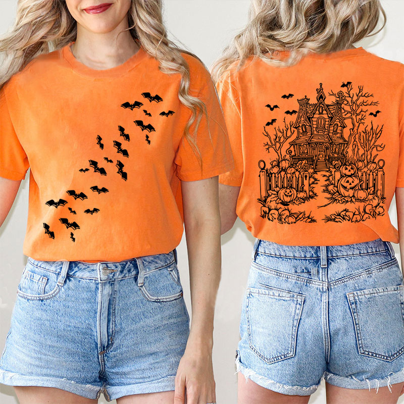 Bats Spooky Halloween Party Teacher Two Sided T-Shirt