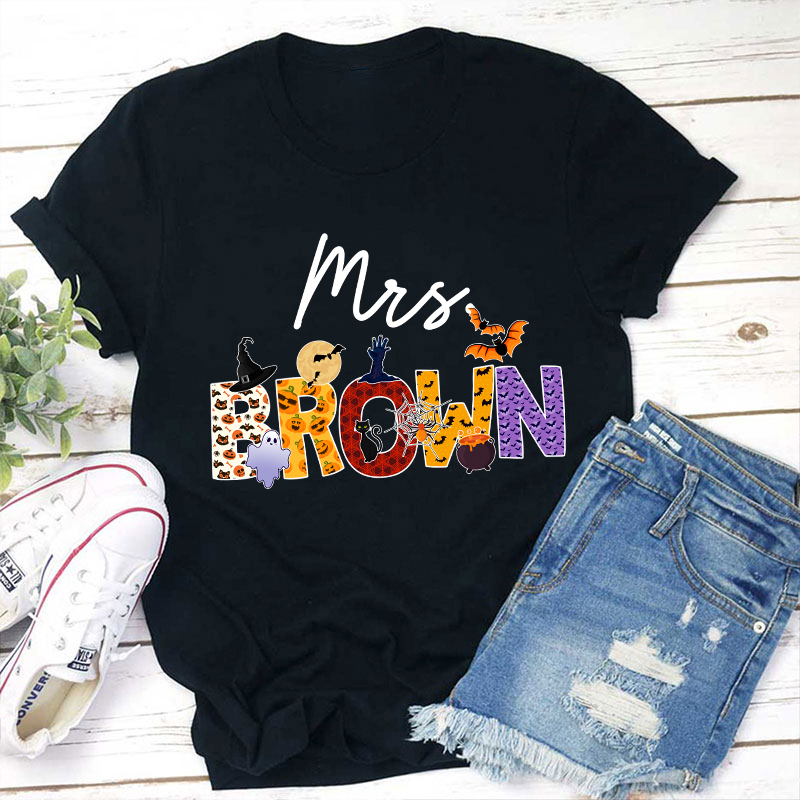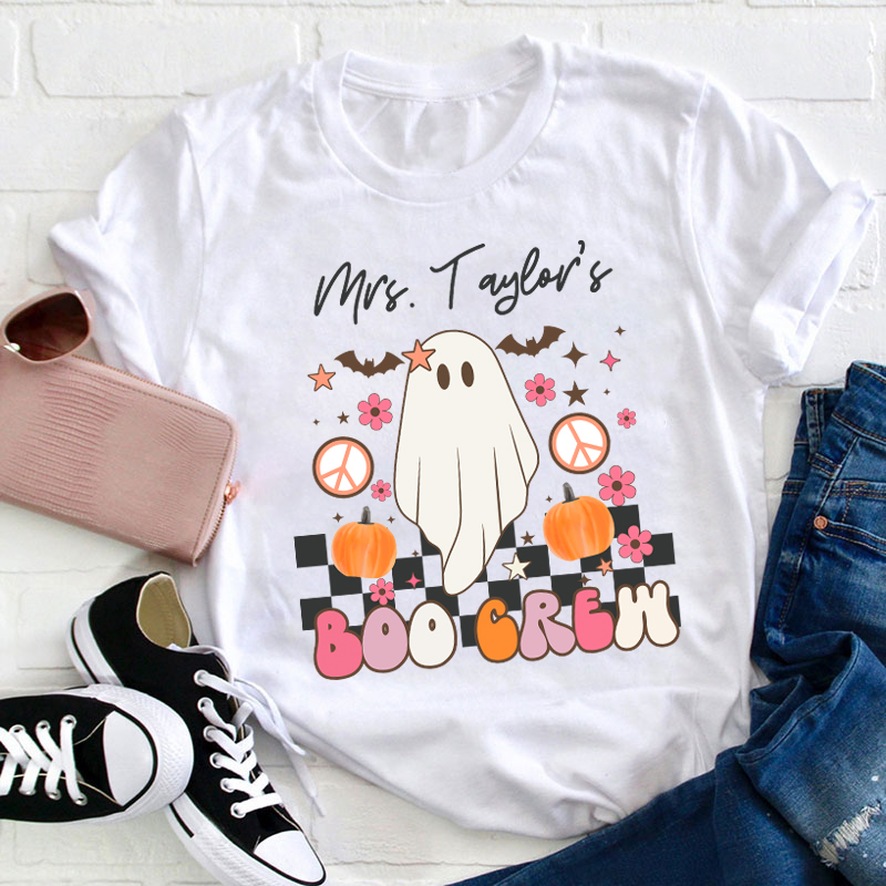 Personalized Name Halloween Boo Crew Teacher T-Shirt