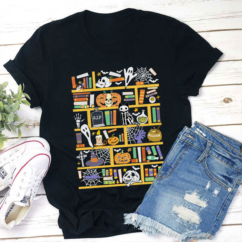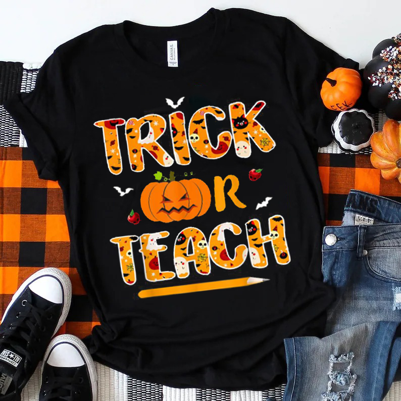 Long Live Halloween Pumpkin Black Cat Teacher T-Shirt