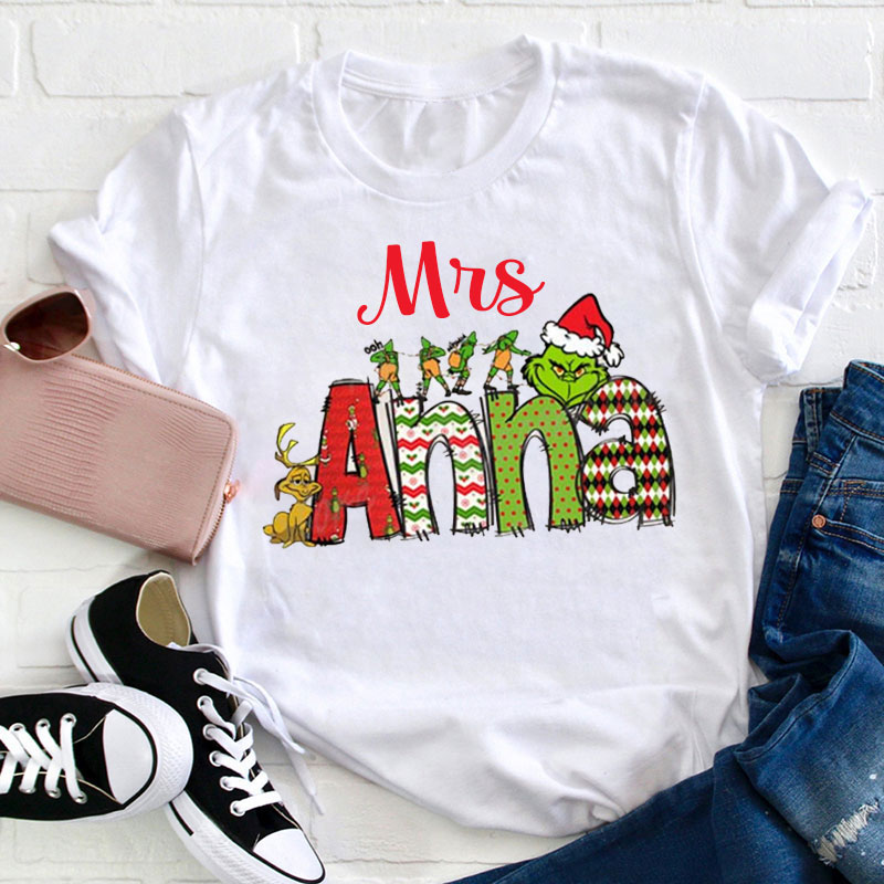 Personalized Name Cute Christmas Gingerbread Teacher T-Shirt