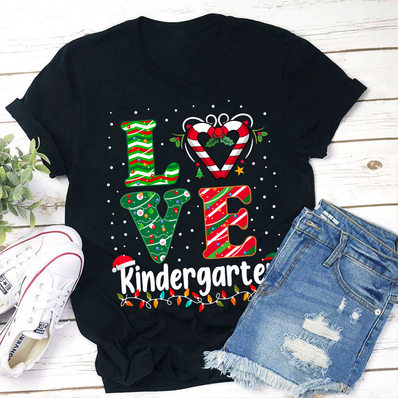 Merry Christmas With Rich Pattern Teacher T-Shirt