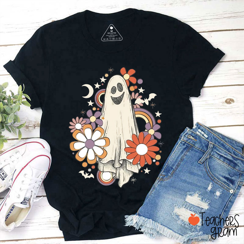 Personalized Name Spooky Ghost Teacher Two Sided T-Shirt
