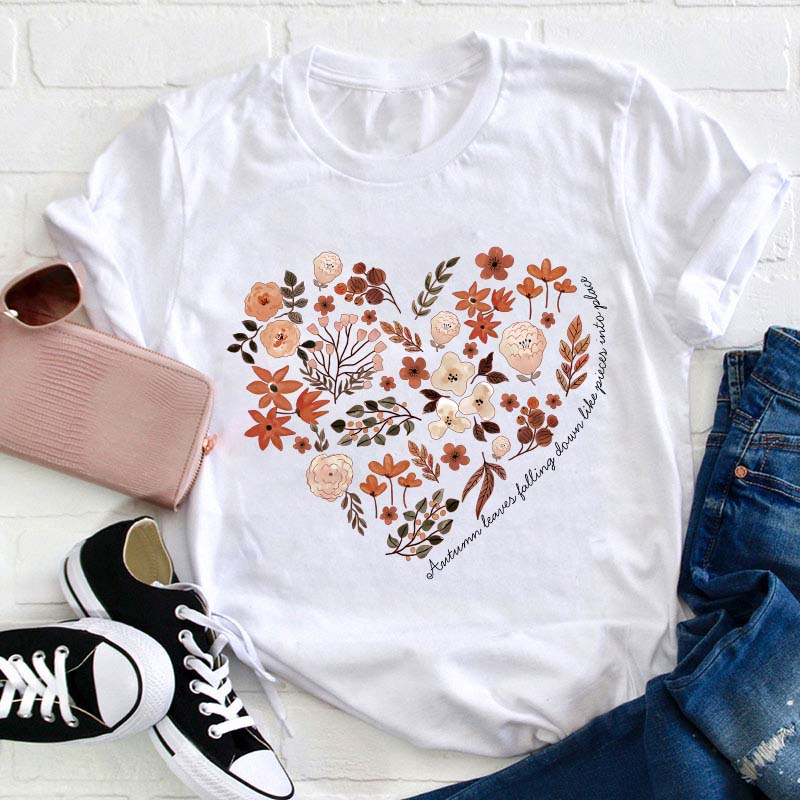 Autumn Leaves Falling Down Like Pieces Into Place Teacher T-Shirt