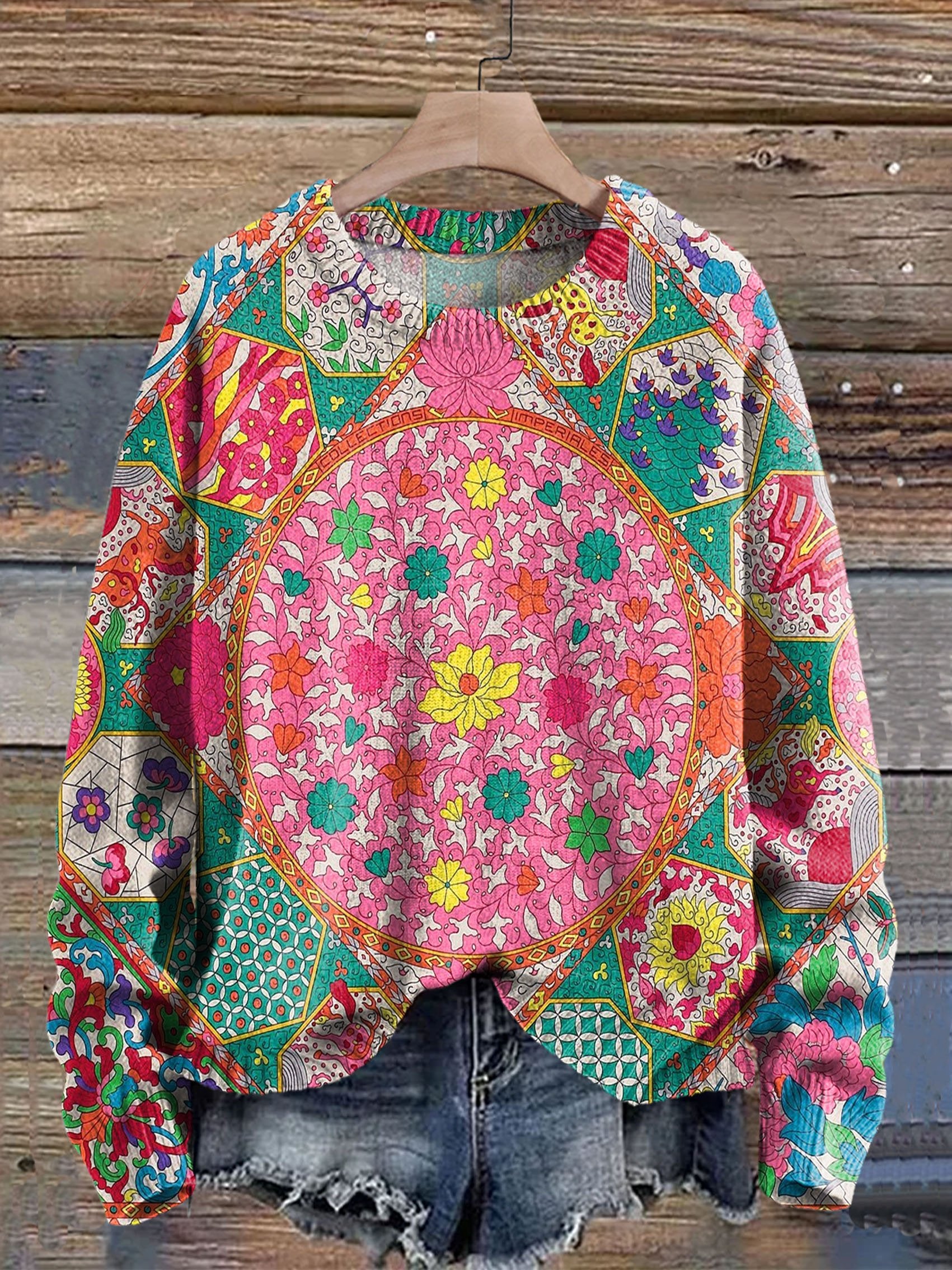 Women's Indian Art Floral Vintage Print Casual Clothes