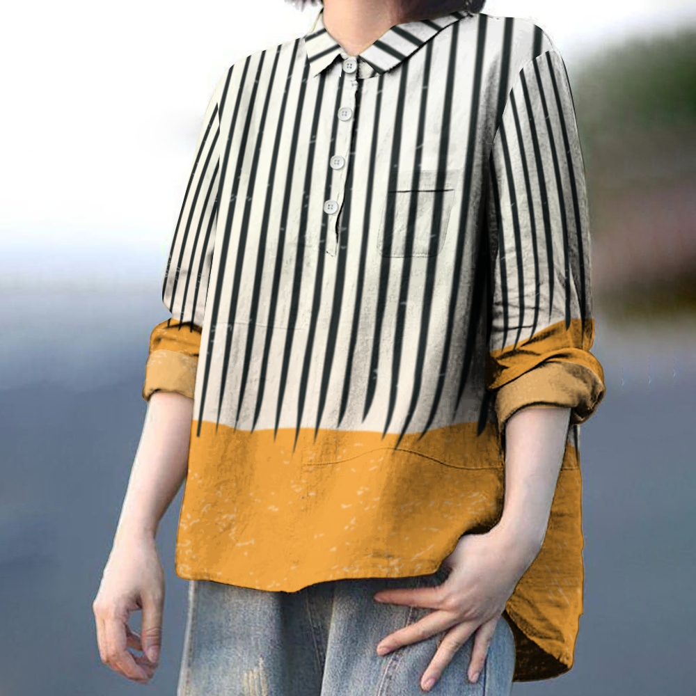 Women's Geometric Lines Printed Casual Long Sleeve Shirt