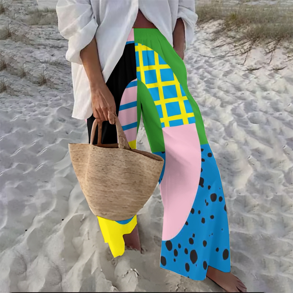Women's Geometric Splicing Printed Casual Loose Pants