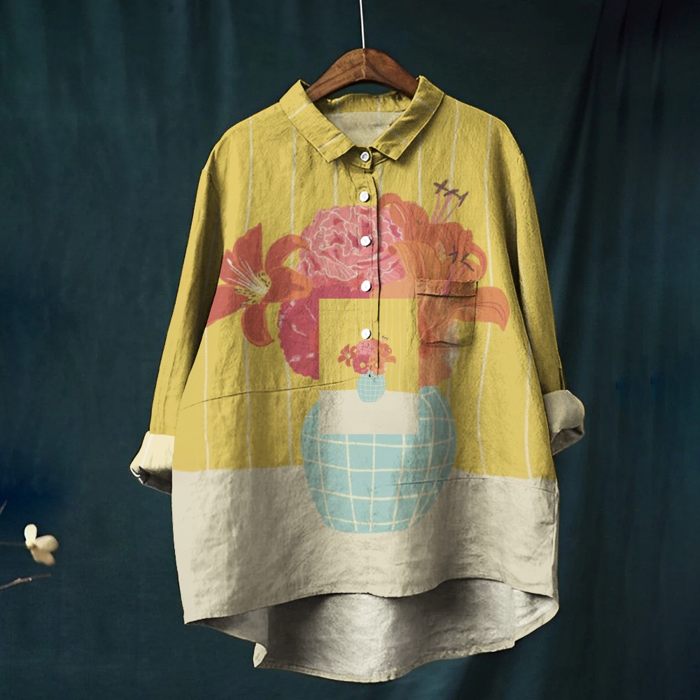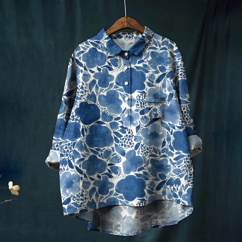 Women's Flower Printed Casual Long Sleeve Shirt
