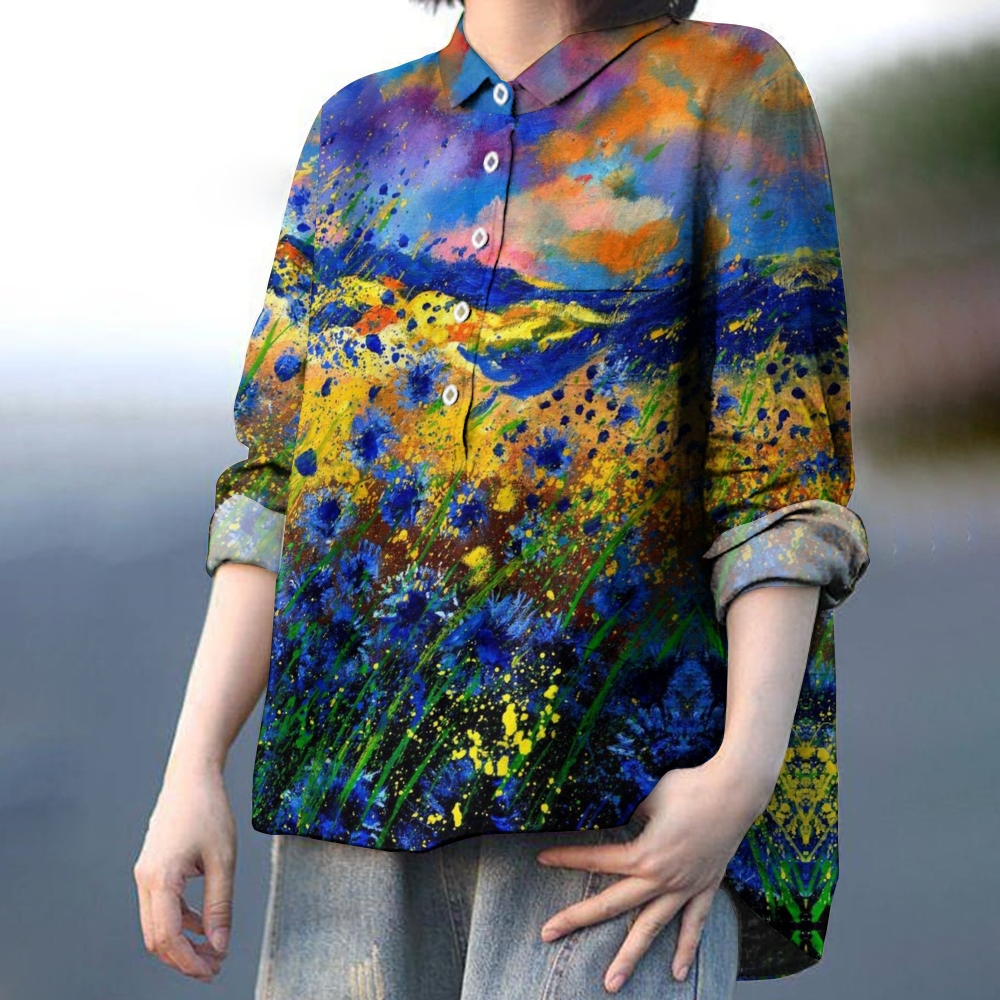 Women's Sfumato Flowers Printed Casual Long Sleeve Shirt
