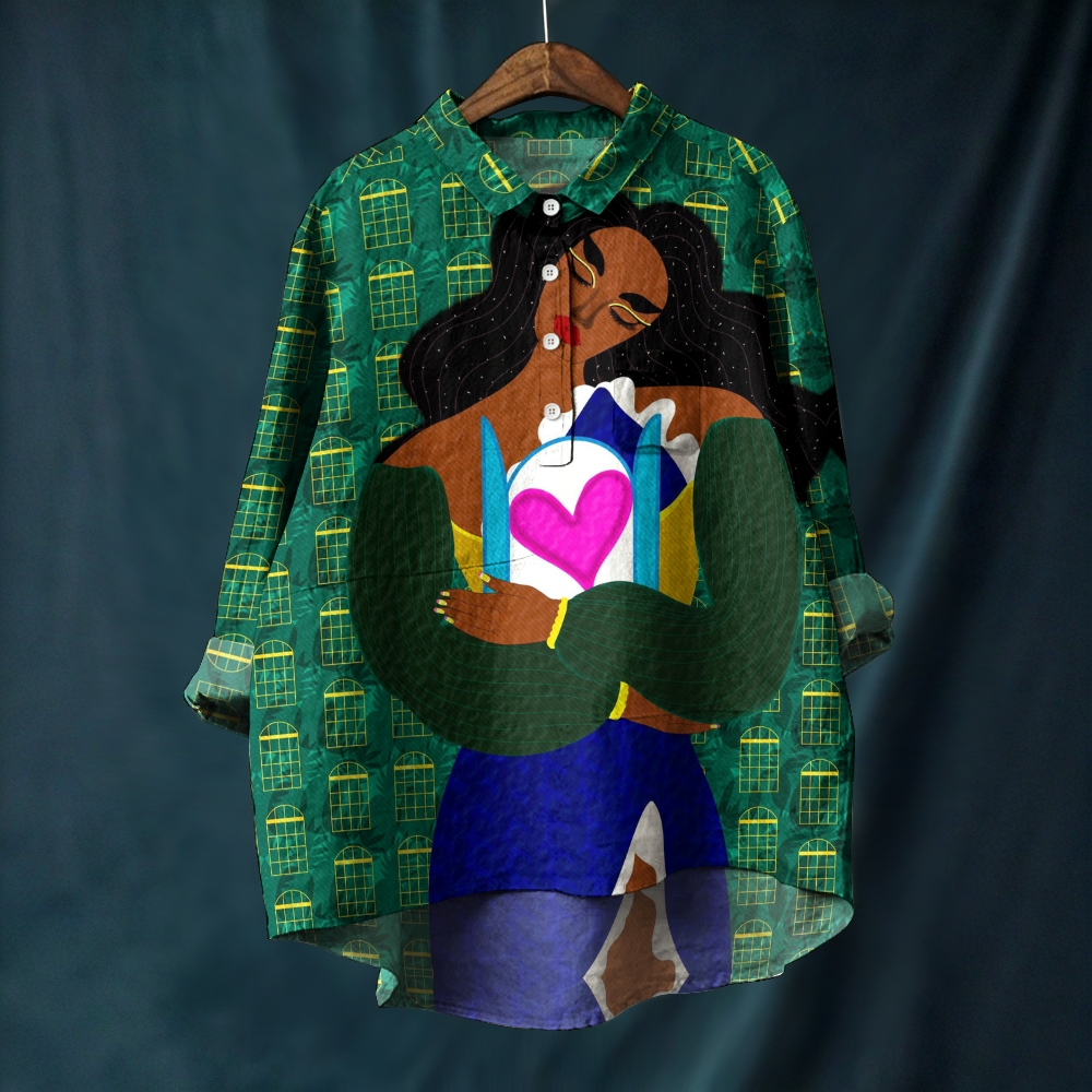Women's Artistic Portrait Printed Casual Long Sleeve Shirt