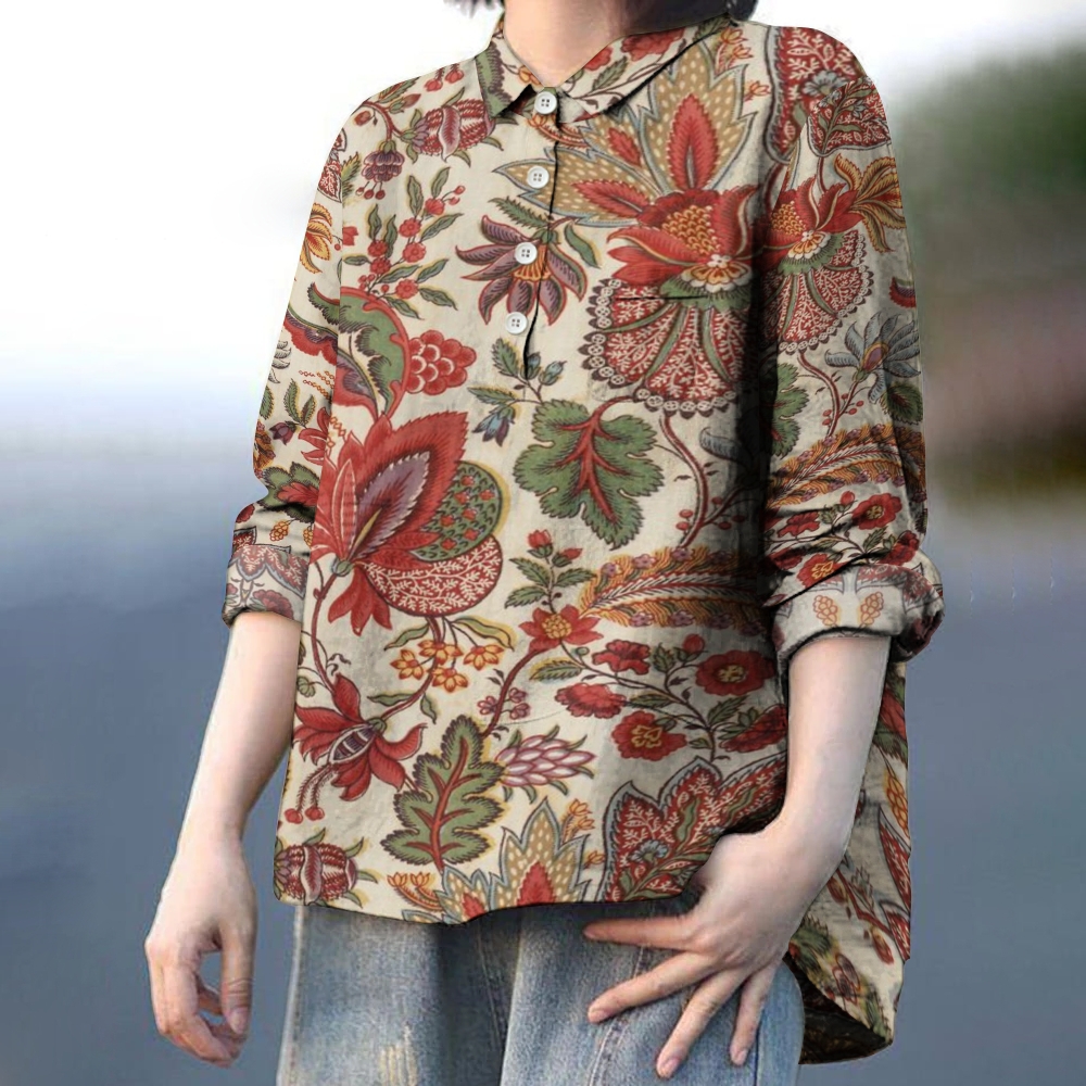 Women's Retro Floral Printed Casual Long Sleeve Shirt