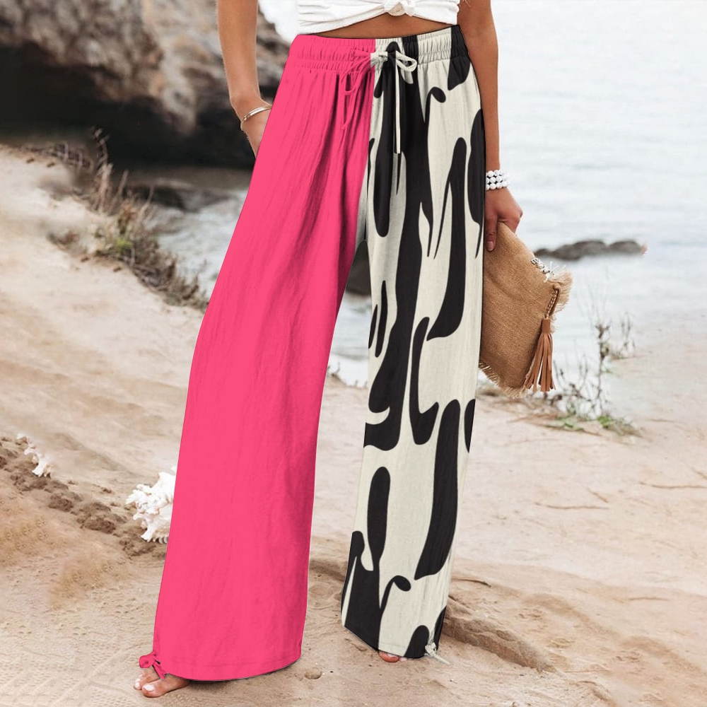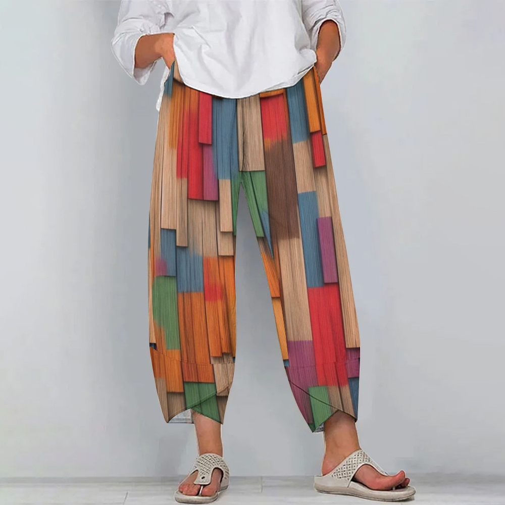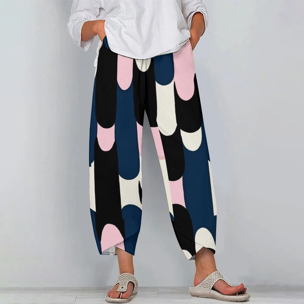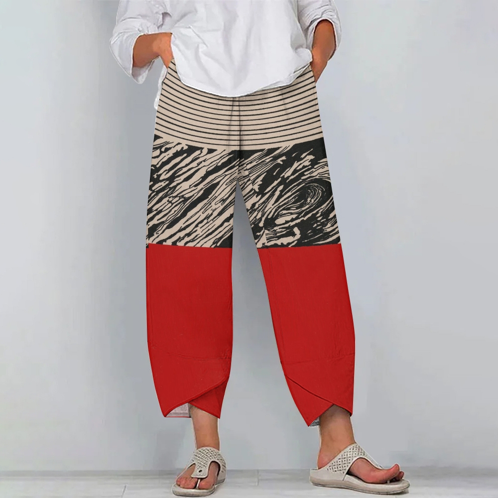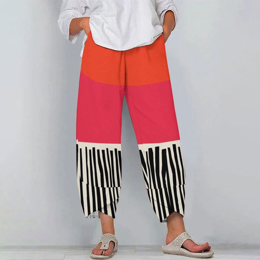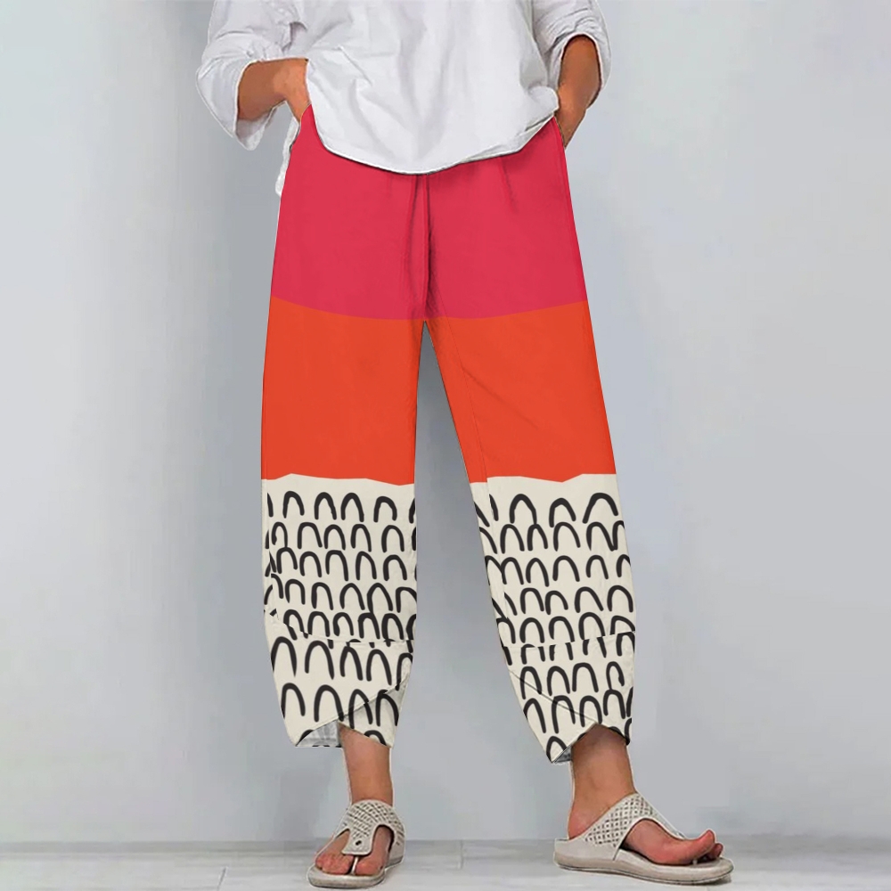 Women's Casual Contrasting Color Block Printed Pants