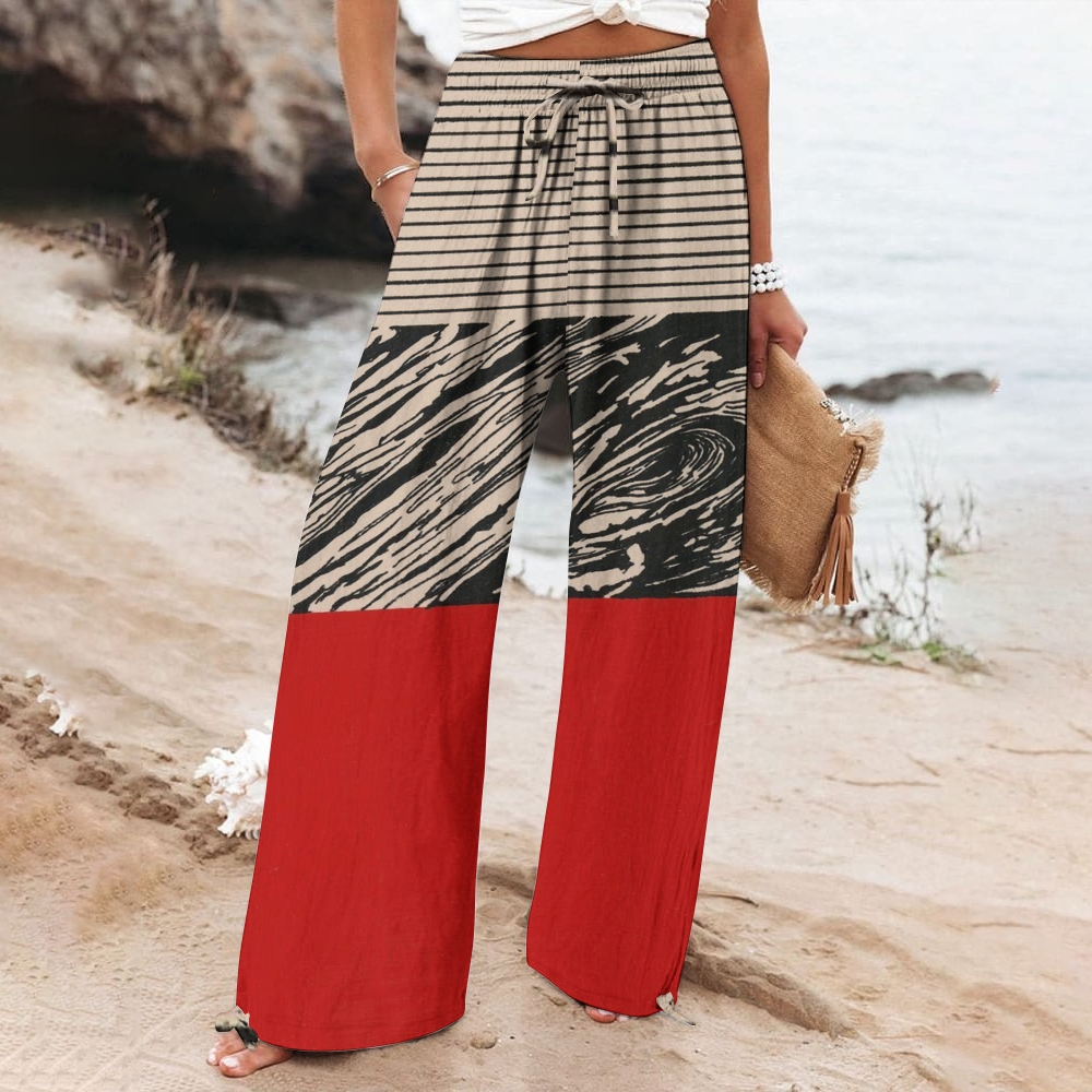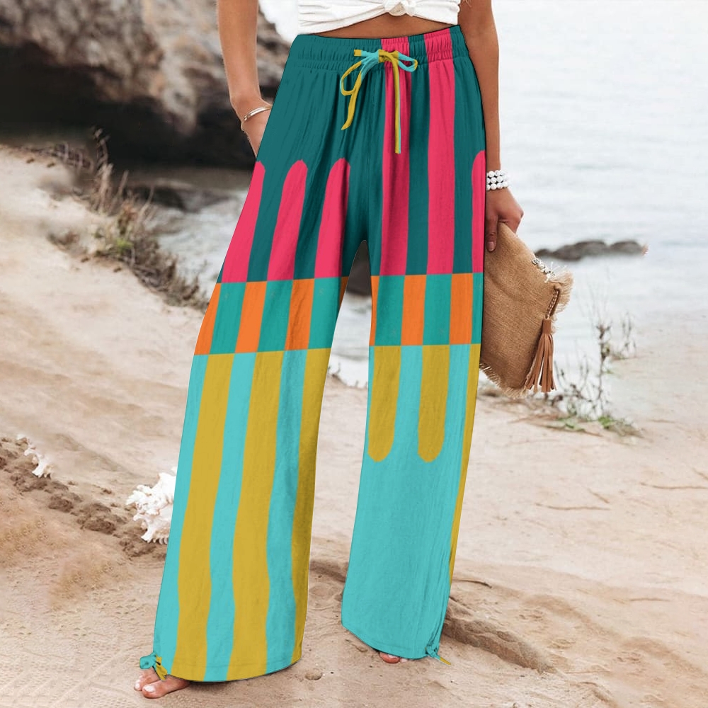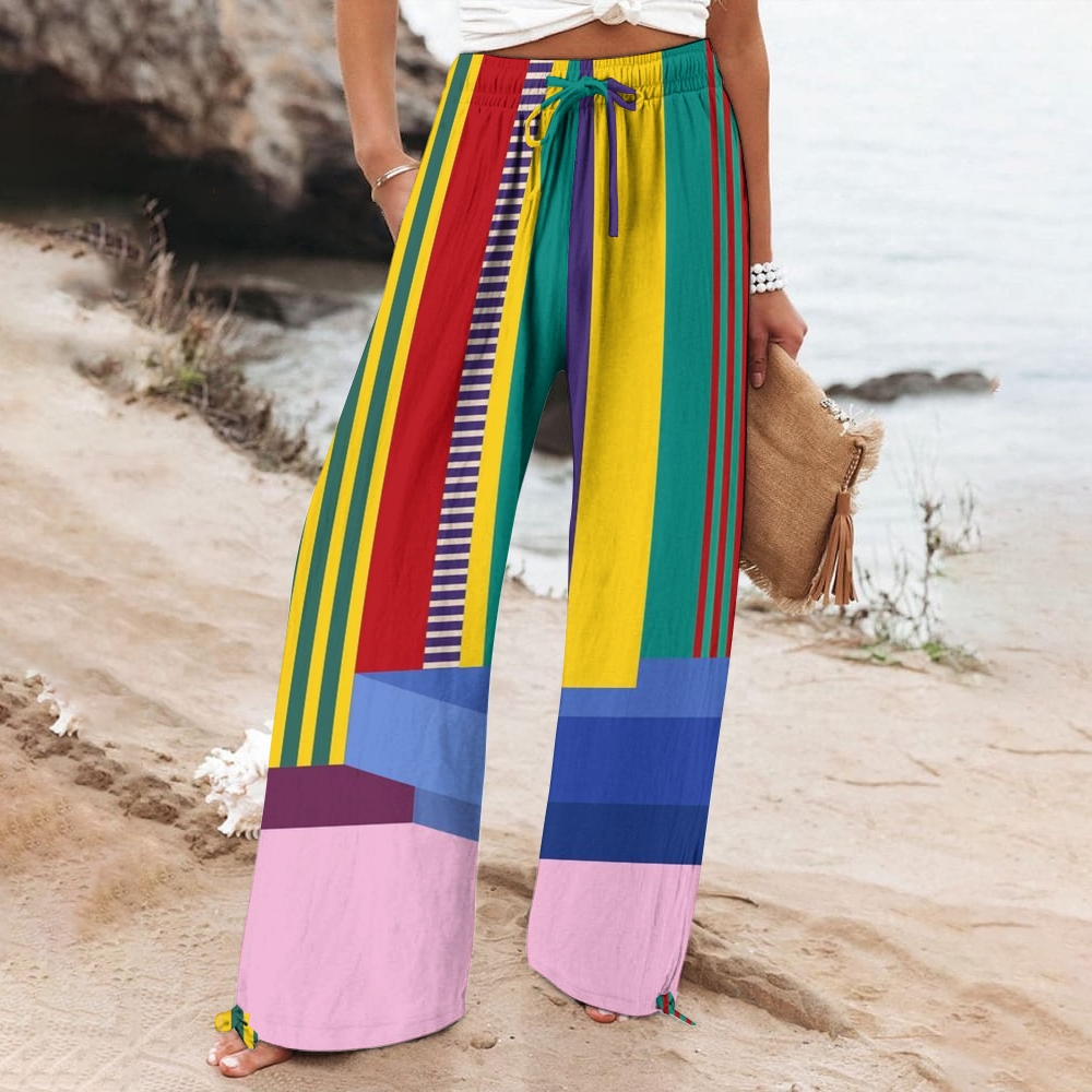 Women's Wide Leg Casual Color Lines Printed Pants