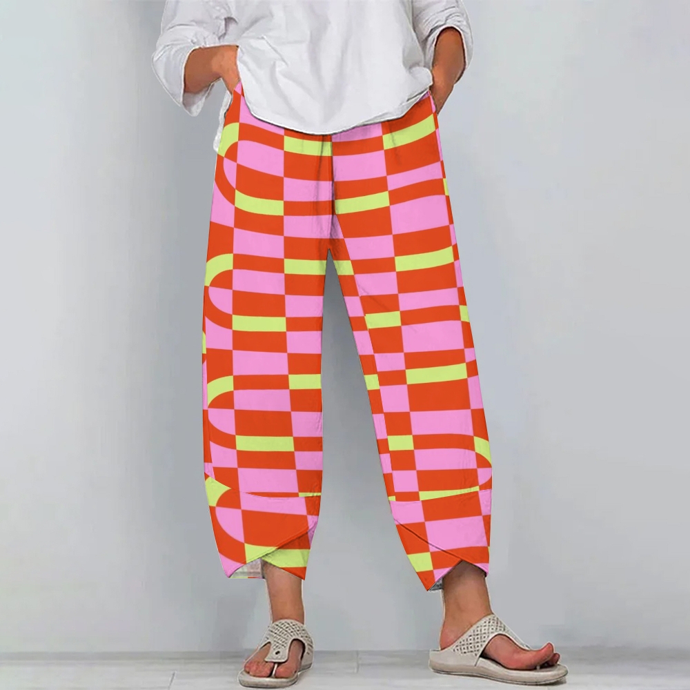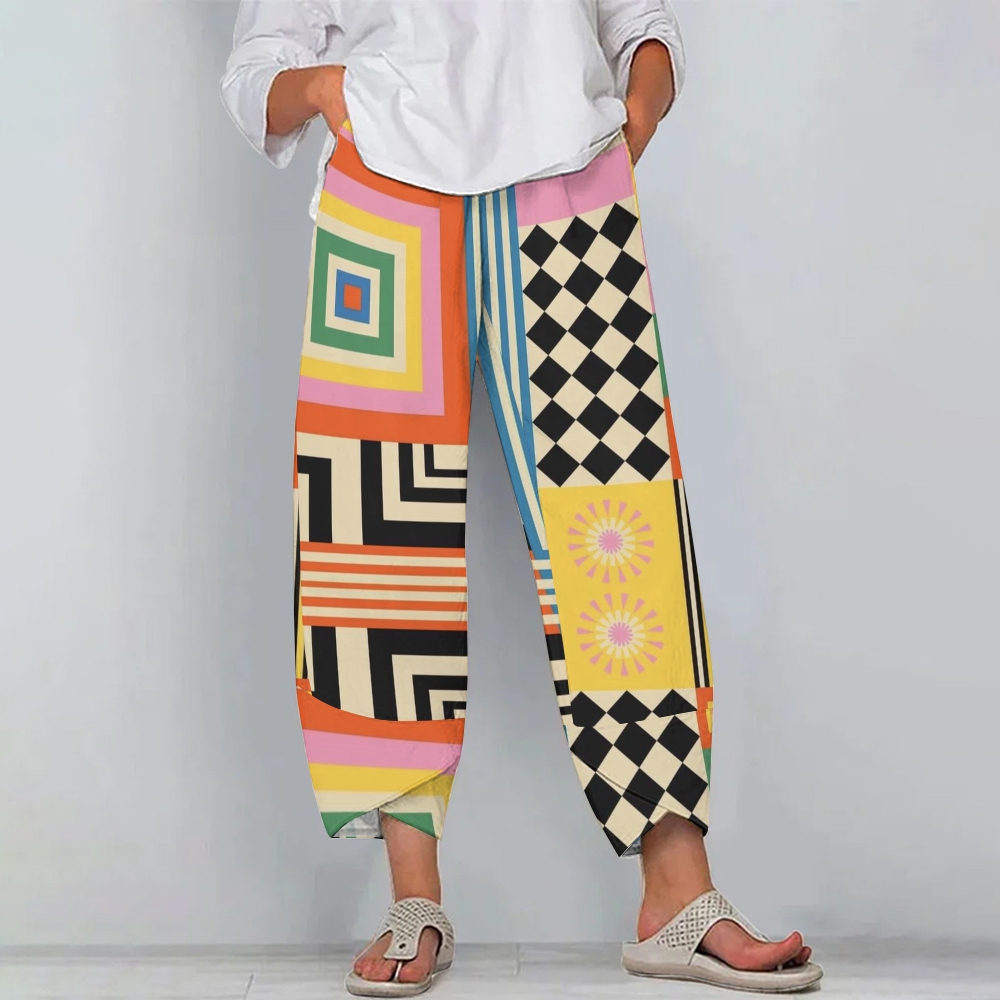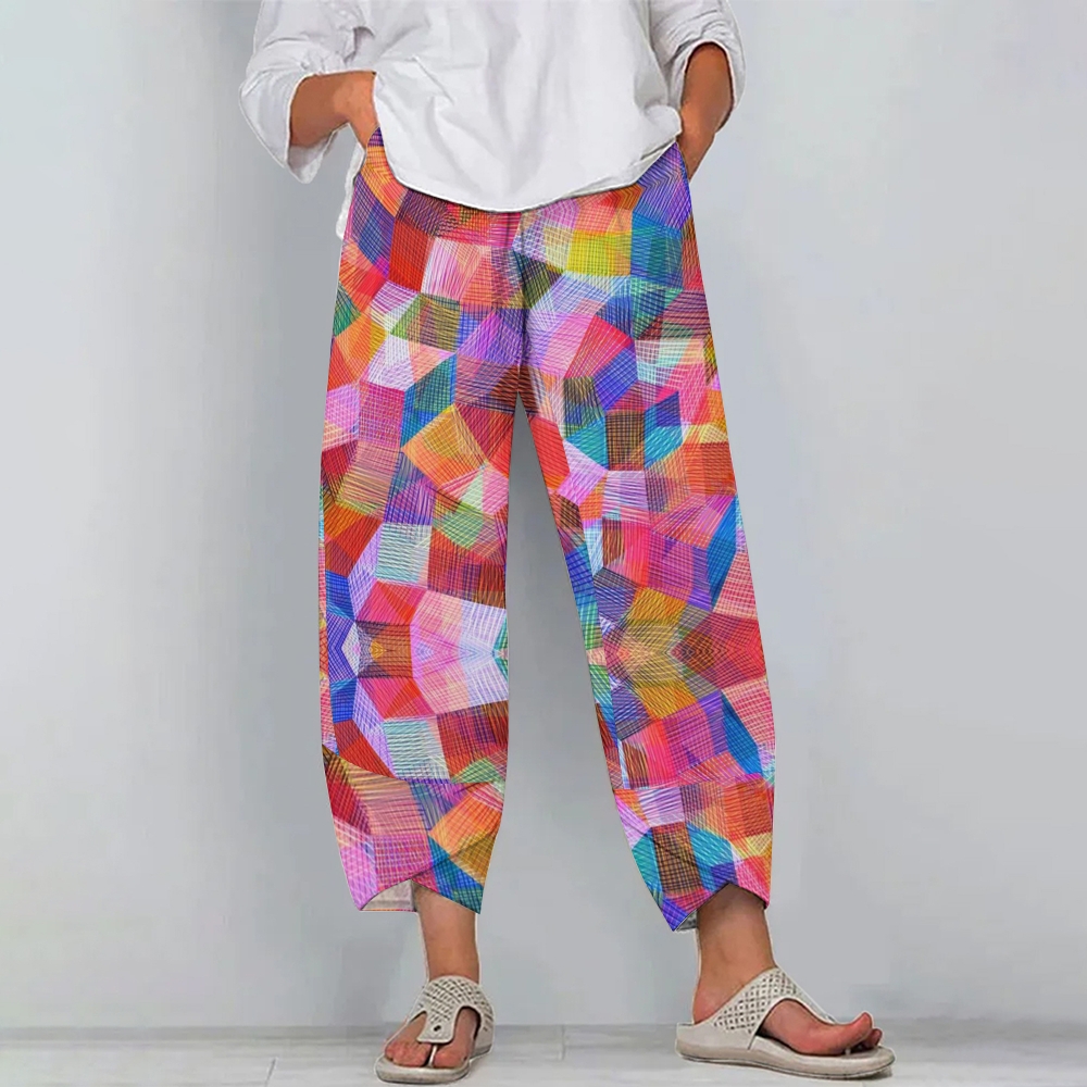 Women's Casual Colored Squares Printed Pants