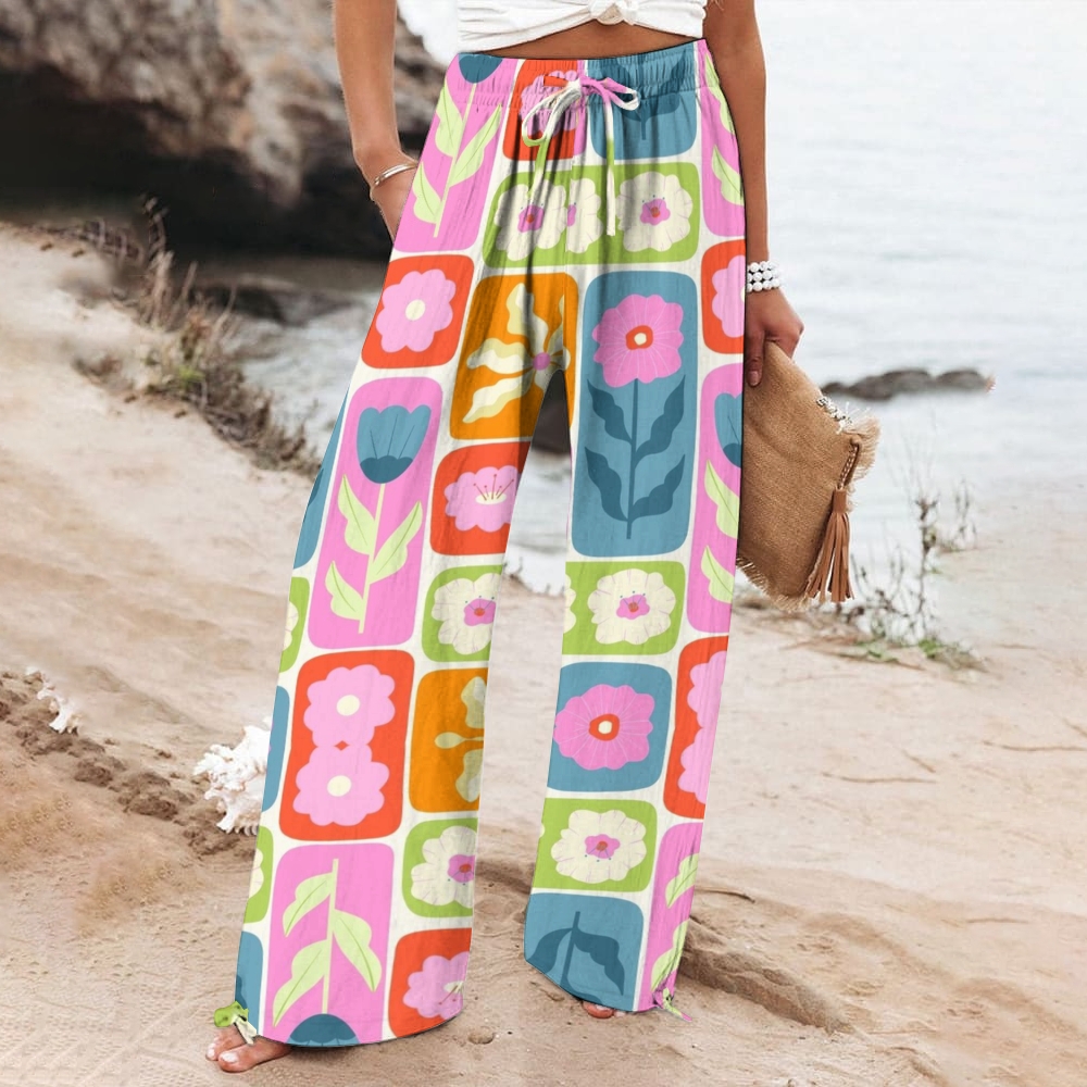 Women's Wide Leg Casual Flowers Printed Pants