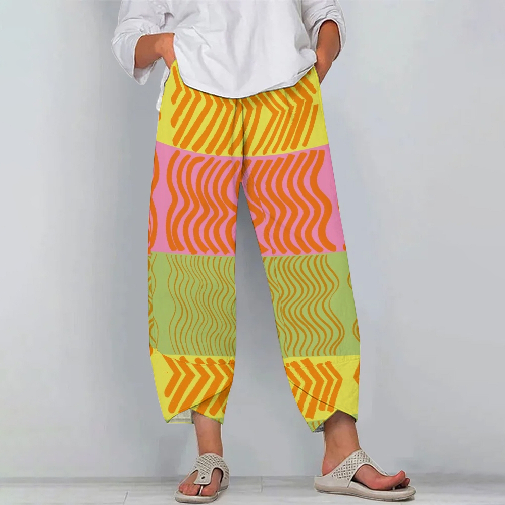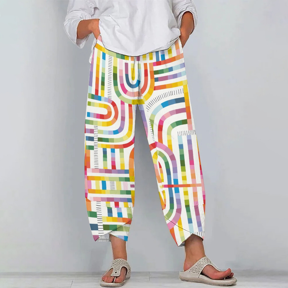 Women's Casual Color Lines Printed Pants
