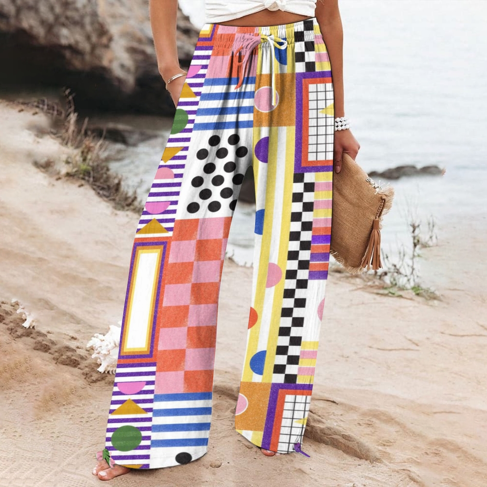 Women's Wide Leg Casual Colorful Geometry Printed Pants