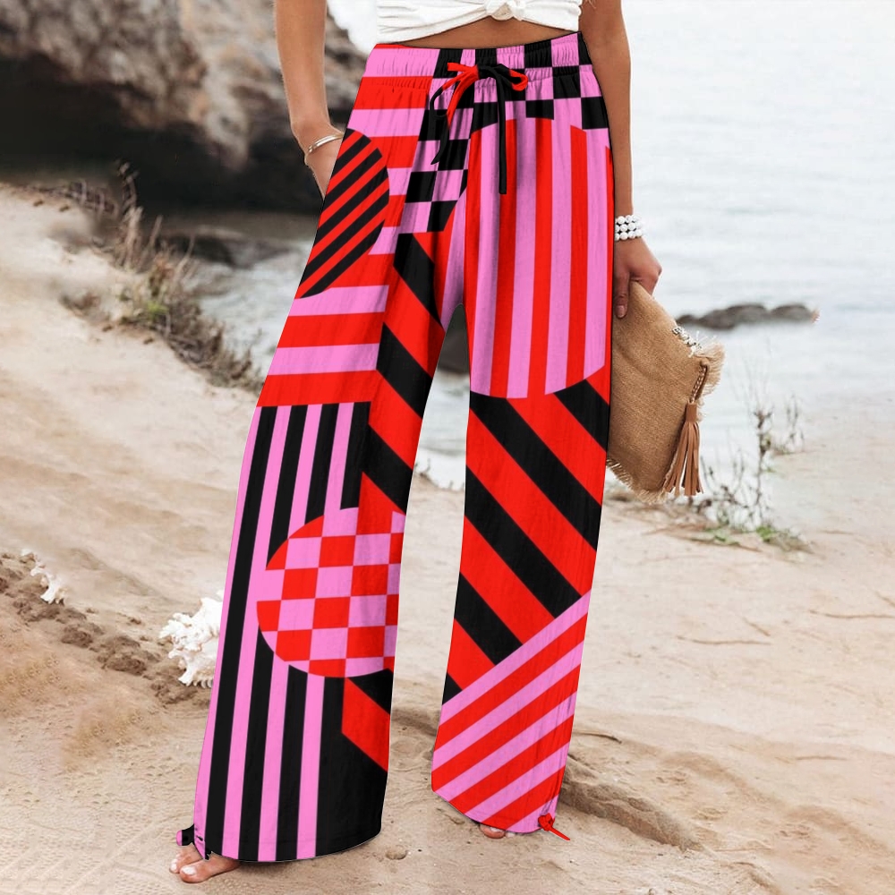 Women's Wide Leg Casual Square Stripes Printed Pants