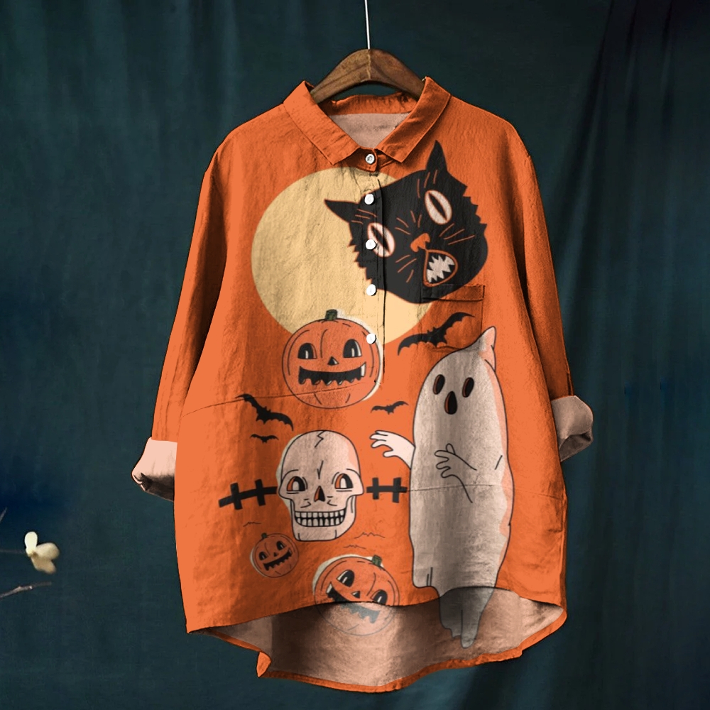 Women's Fun Ghost Cat Printed Casual Shirt
