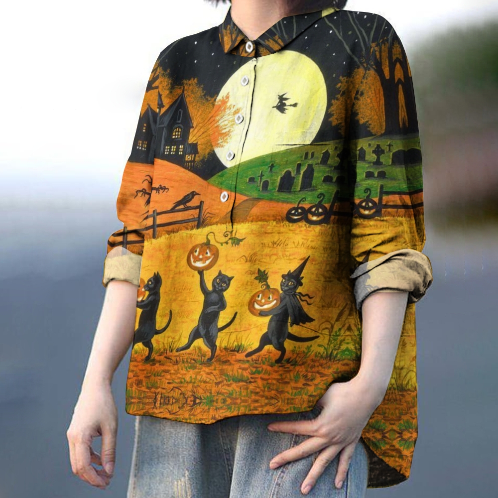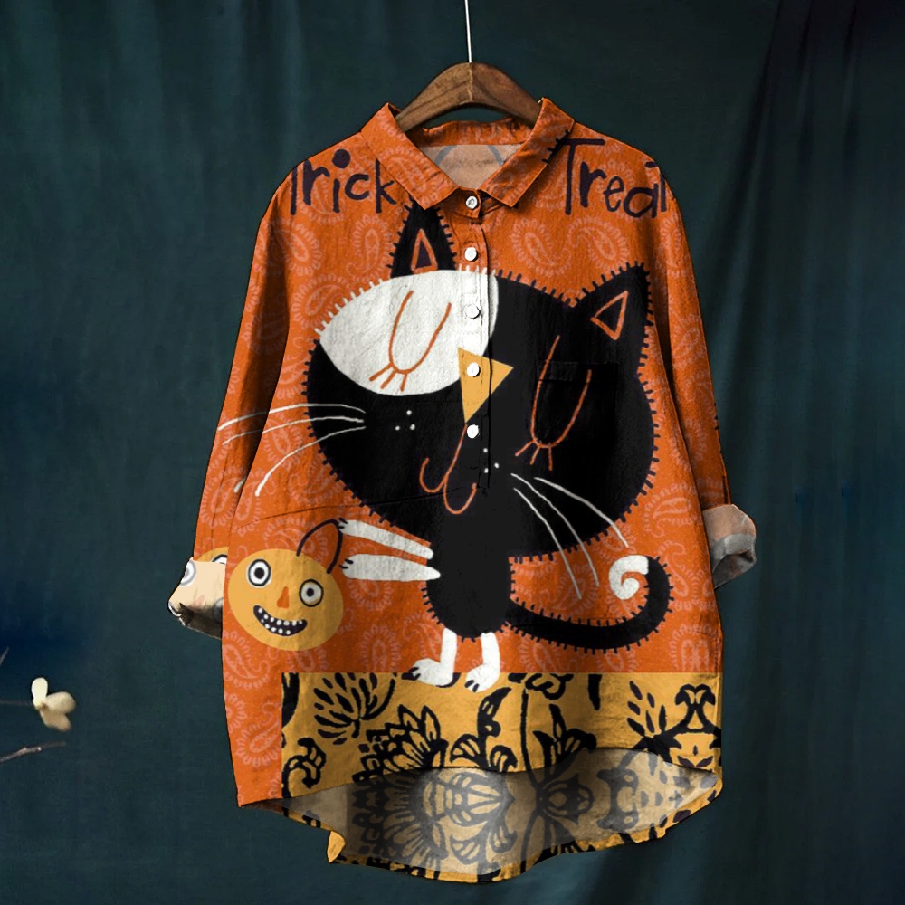 Women's Halloween Cartoon Cat Printed Casual Shirt