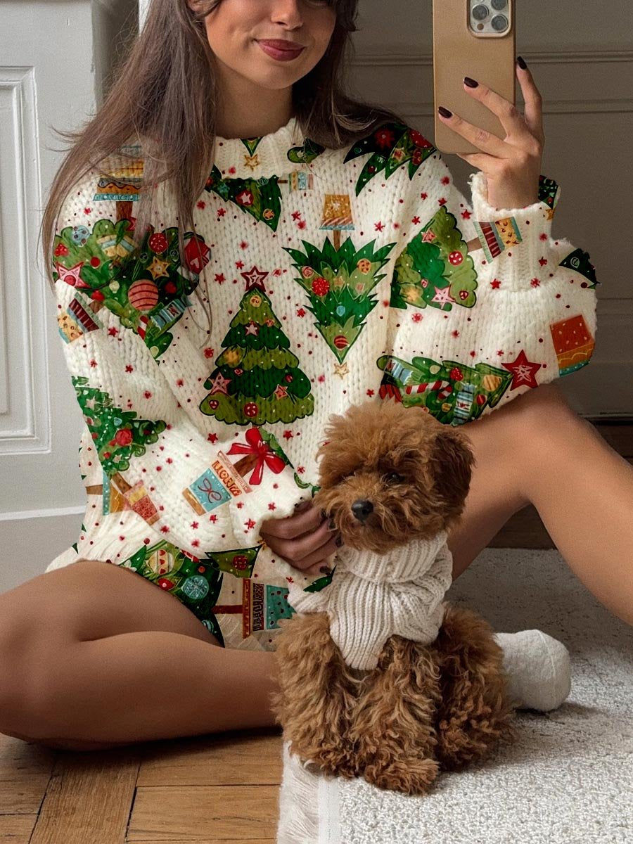 Women's Christmas Tree Combination Print Knitted Sweater