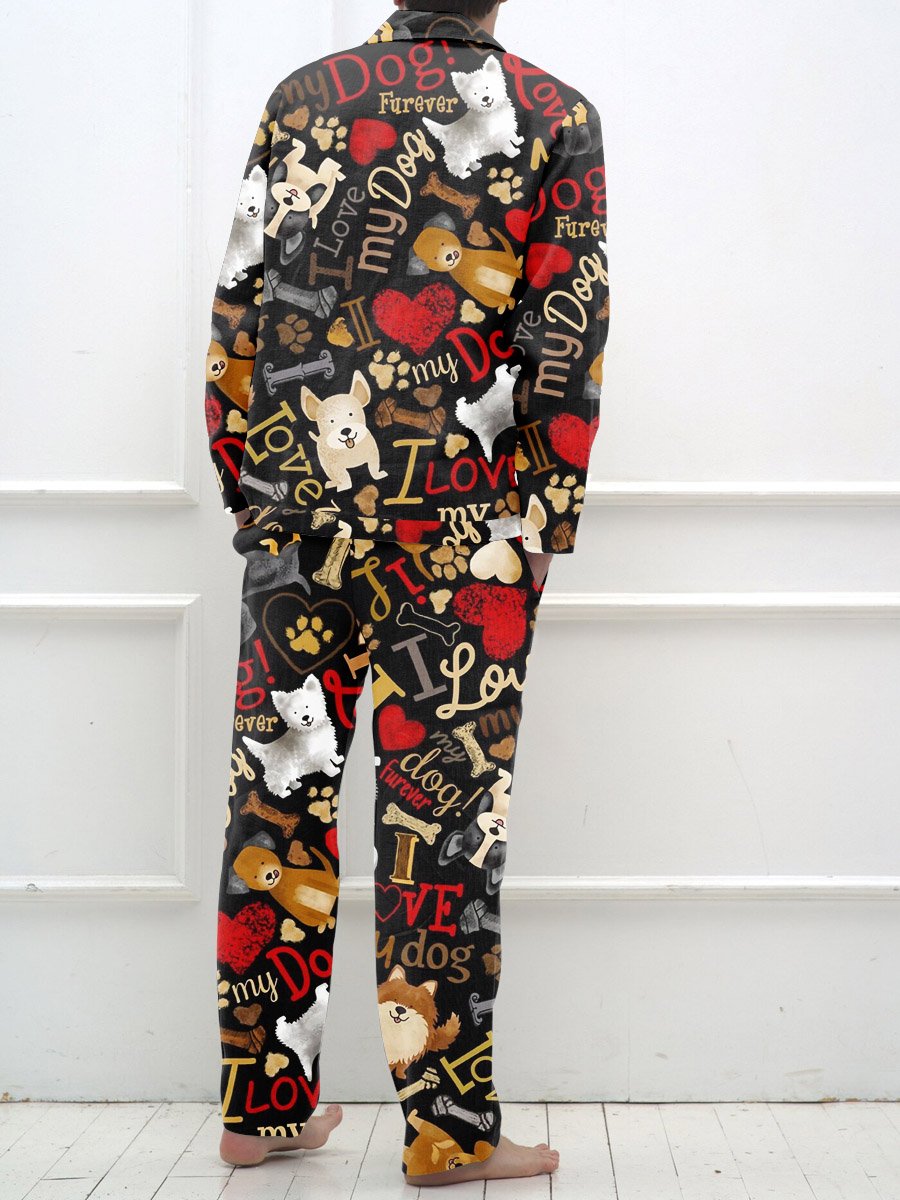Men's I Love My Dog Print Long Sleeve Loungewear Set
