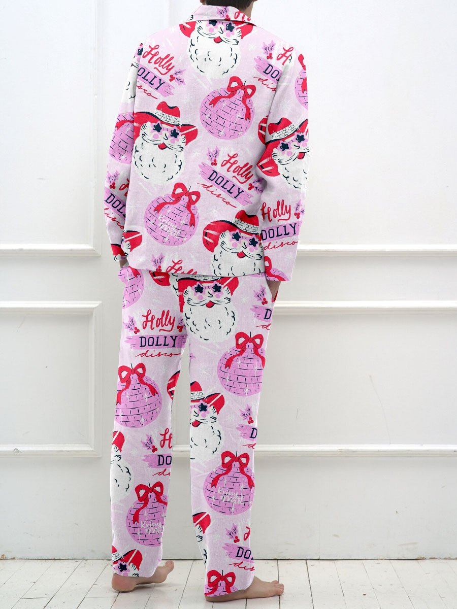 Men's Pink Christmas Disco Print Cardigan Homewear Set