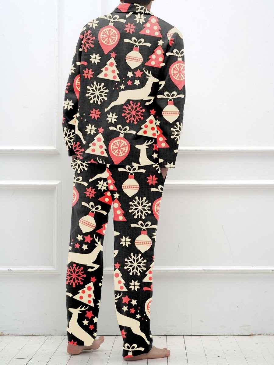 Men's Red Christmas Fun Printed Home Long Sleeve Suit