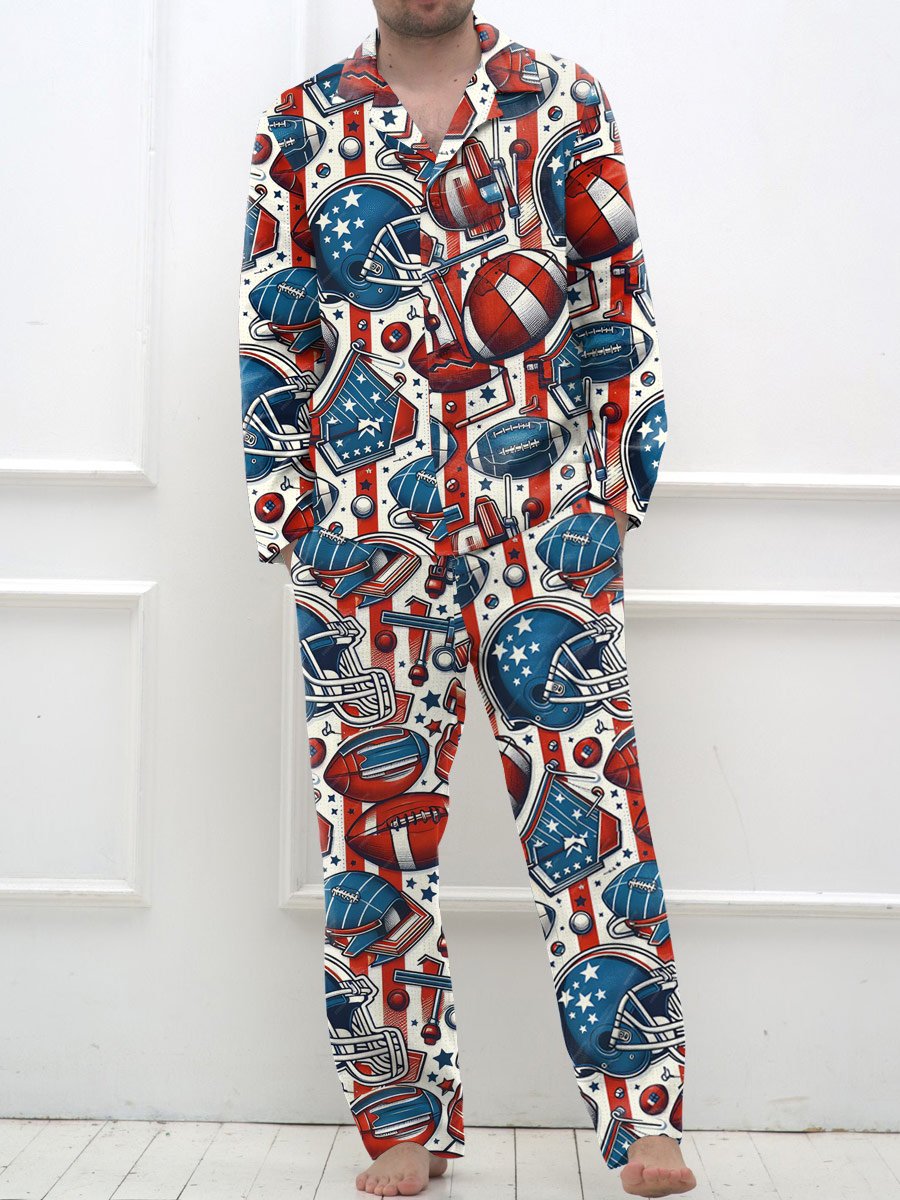 Men's Art Graffiti Rugby Print Lounge Long Sleeve Suit