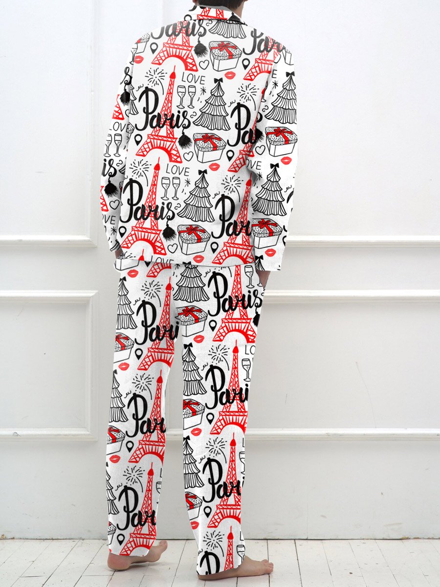 Men's Fun Christmas Eiffel Tower Printed Lounge Long Sleeve Suit