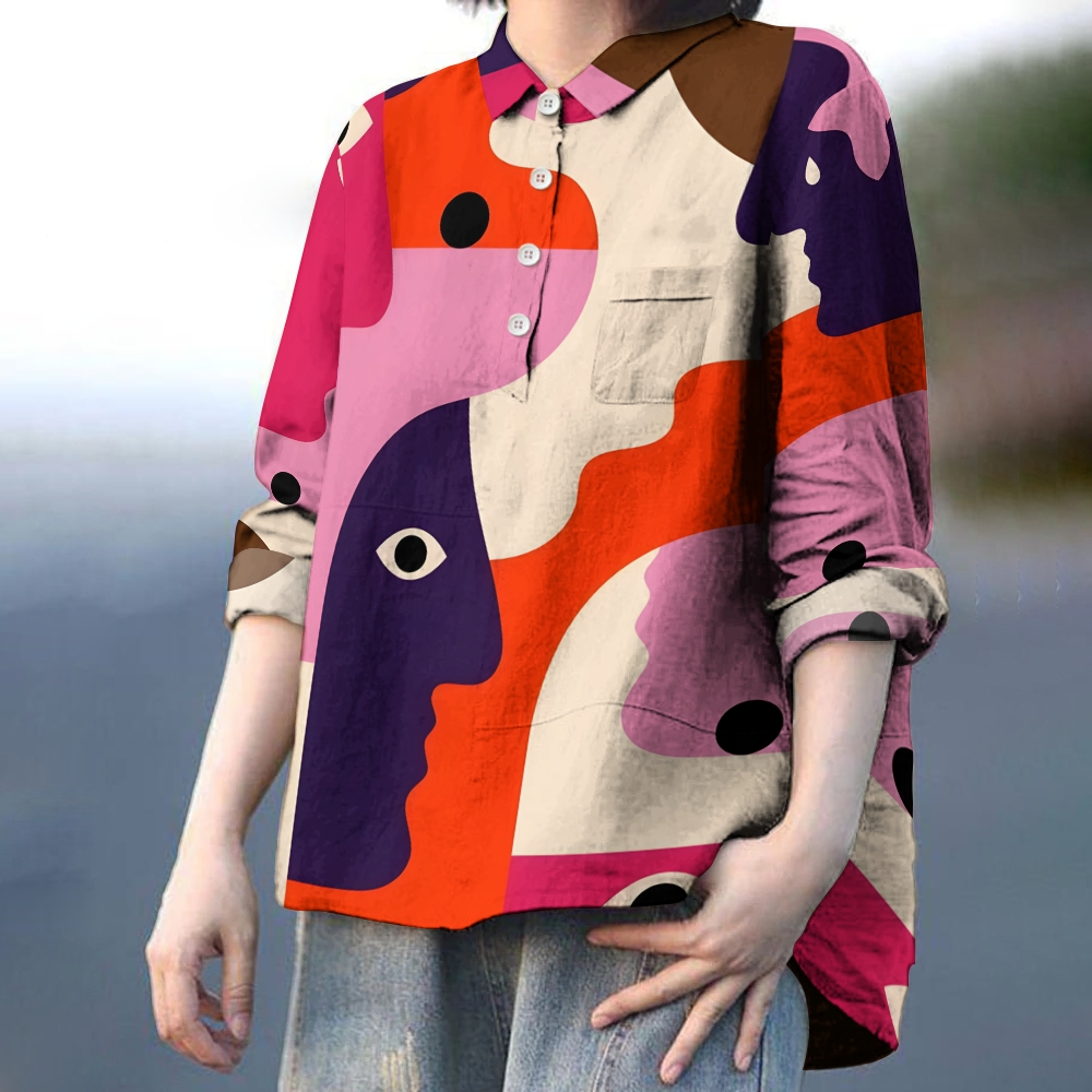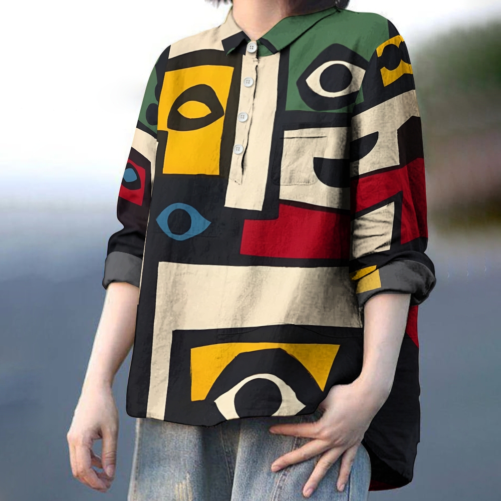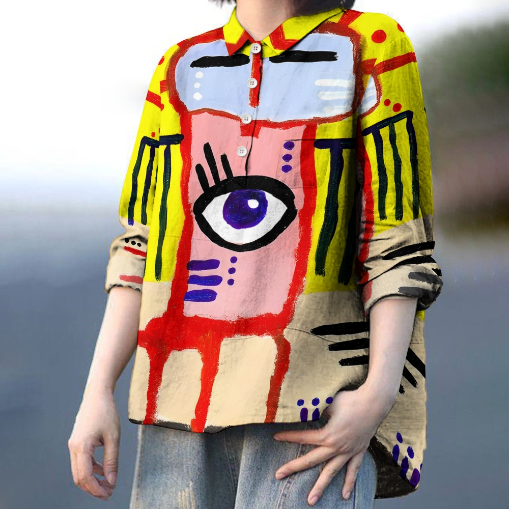Women's Abstract Art Printed Casual Long Sleeve Shirt