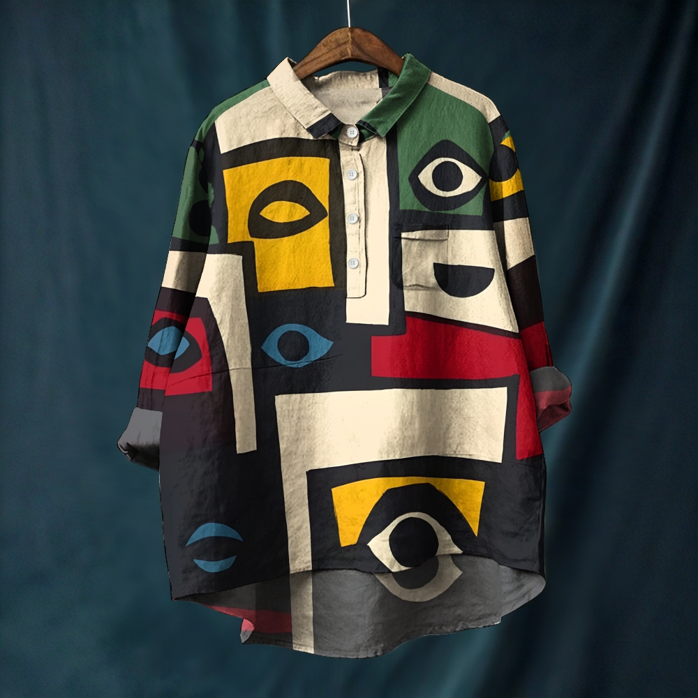 Women's Abstract Geometric Eyes Printed Casual Long Sleeve Shirt