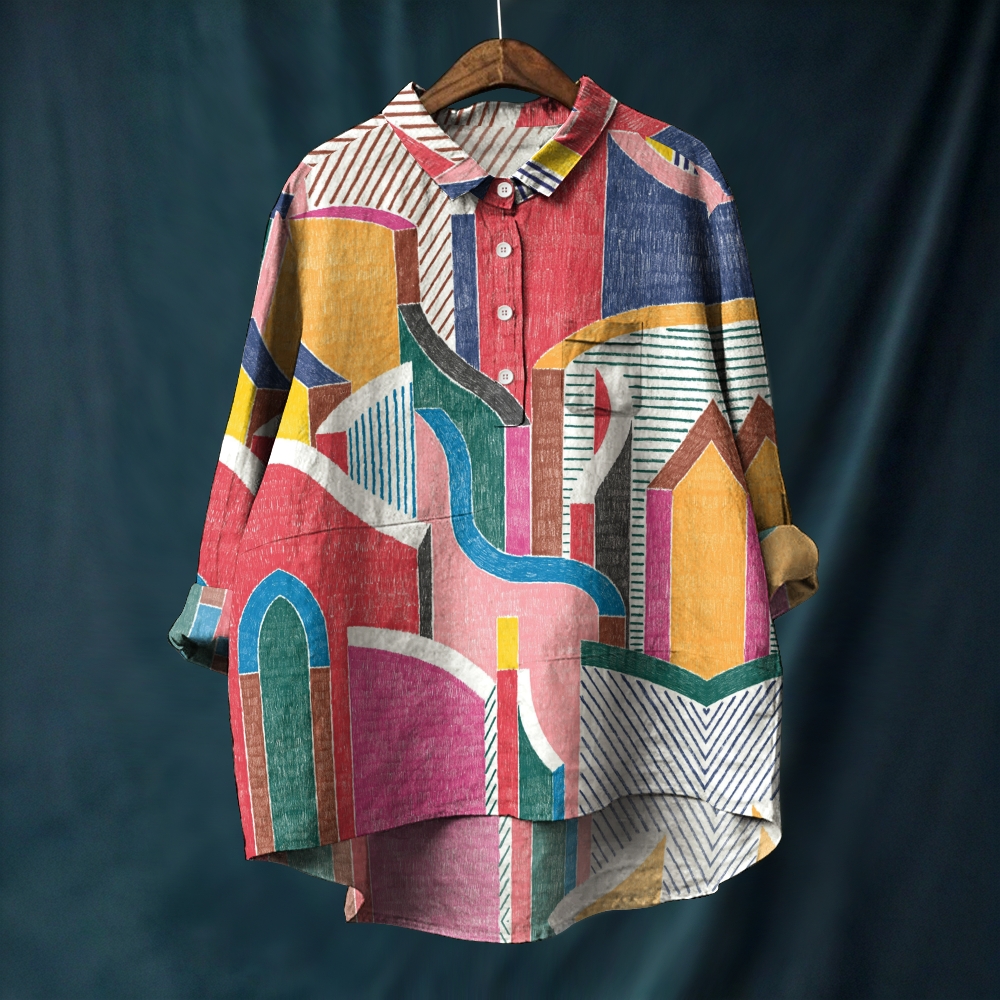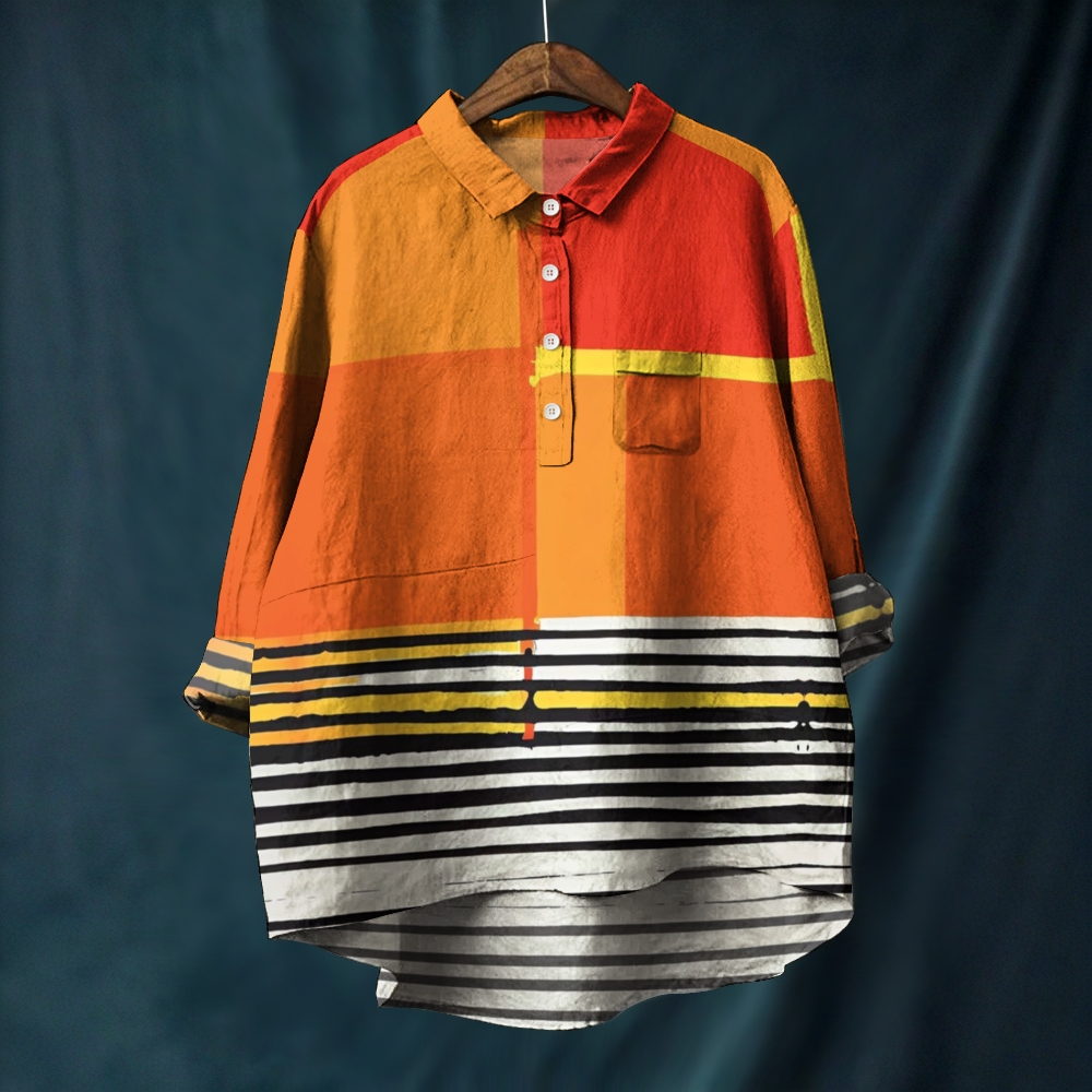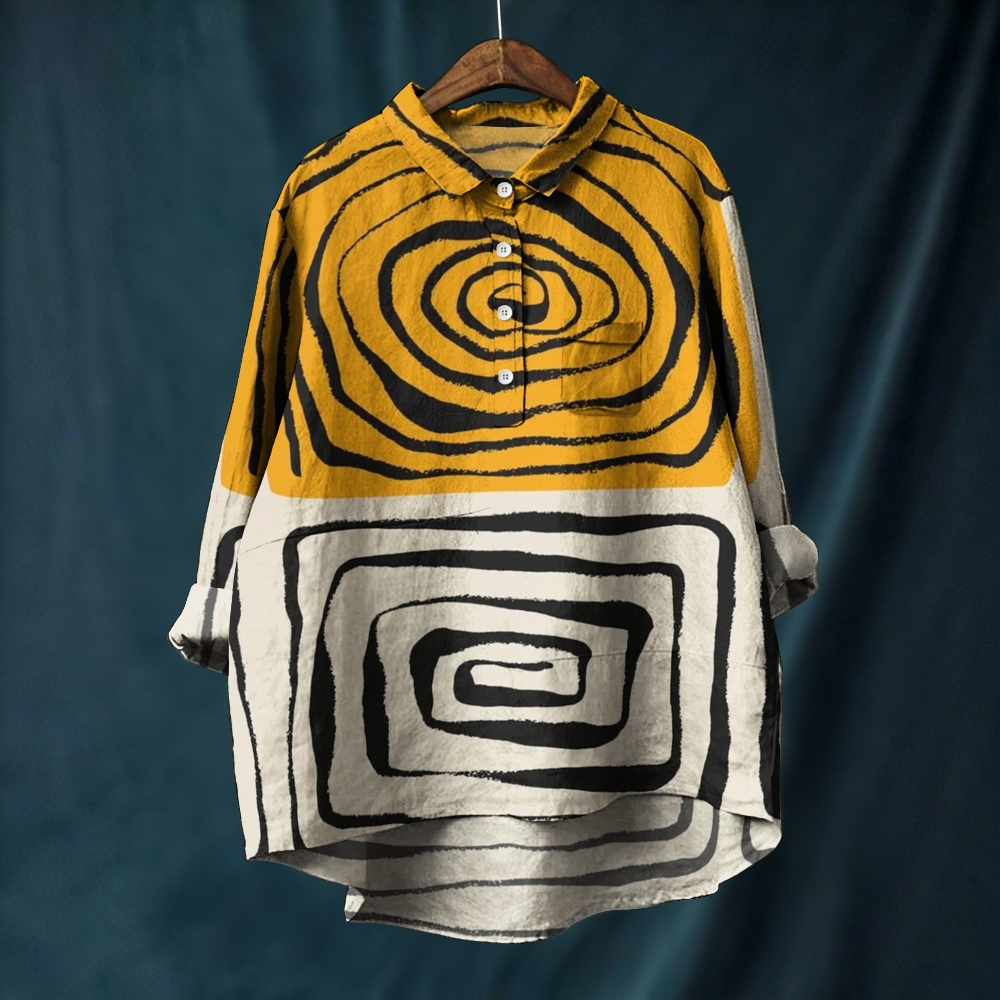 Women's Geometric Lines Printed Casual Long Sleeve Shirt