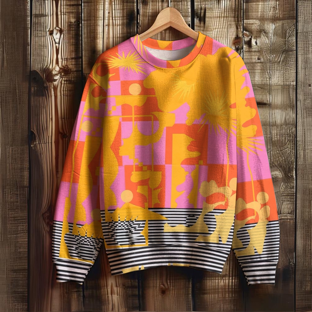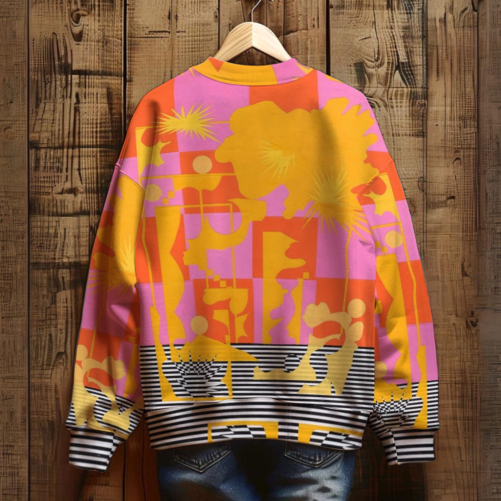 Unisex Artistic Geometric Stripes Printed Sweatshirt