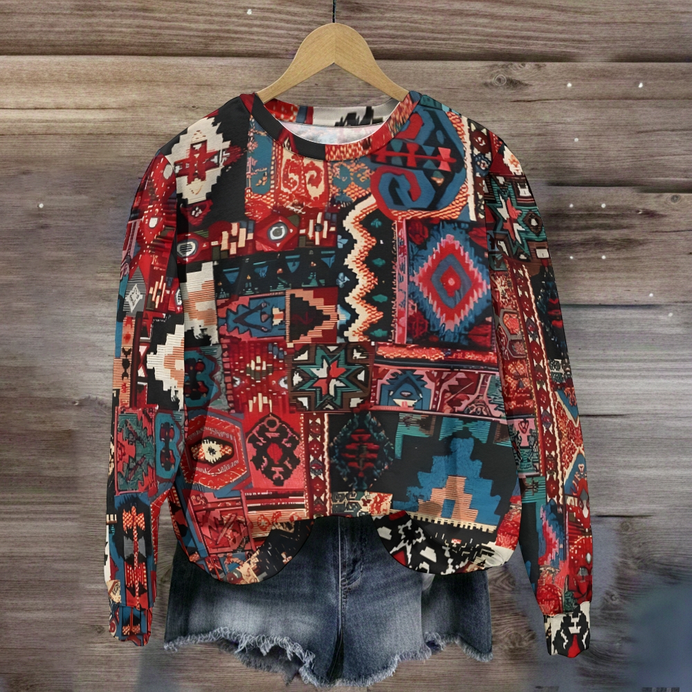 Women's Colorful Geometric Stripes Printed Casual Long Sleeve Shirt