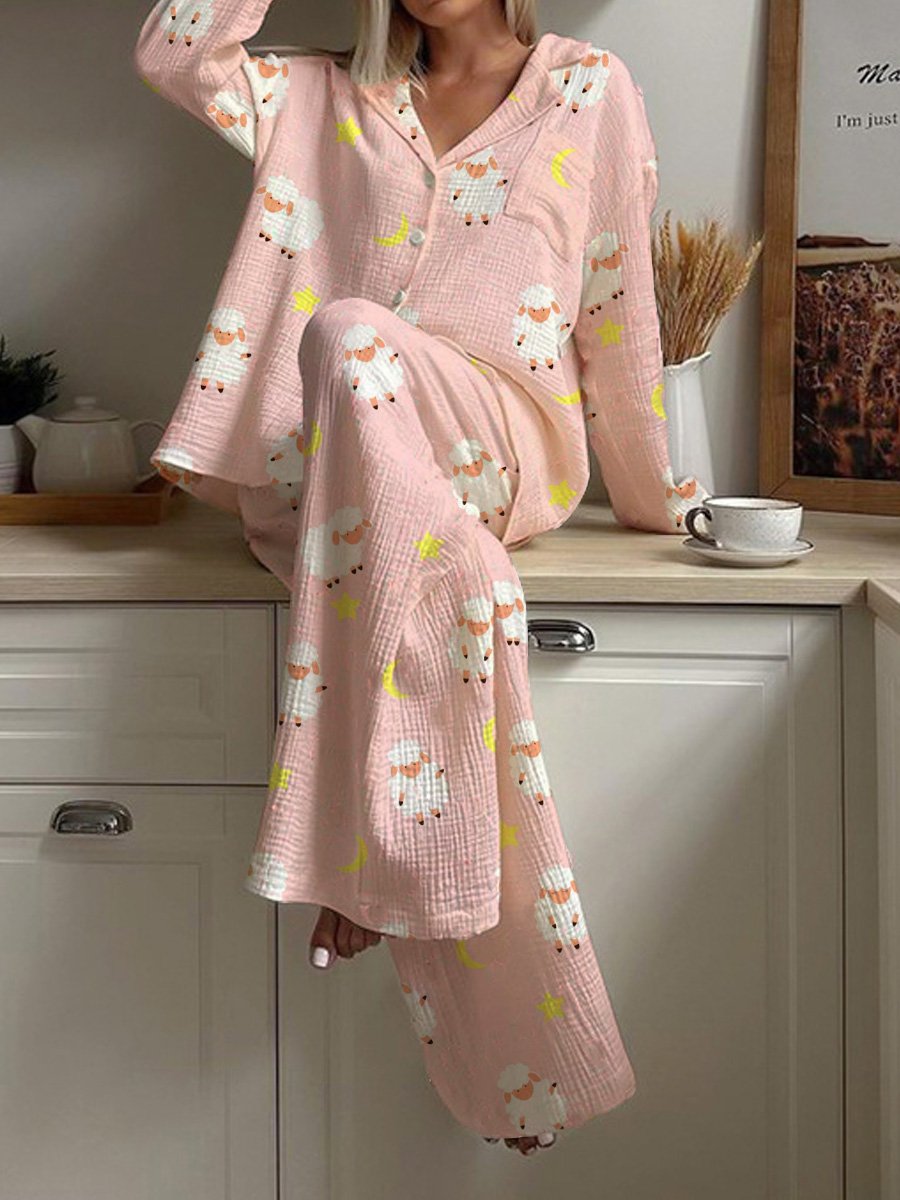 Women's Cute Animal Art Floral Print Home Long Sleeve Suit