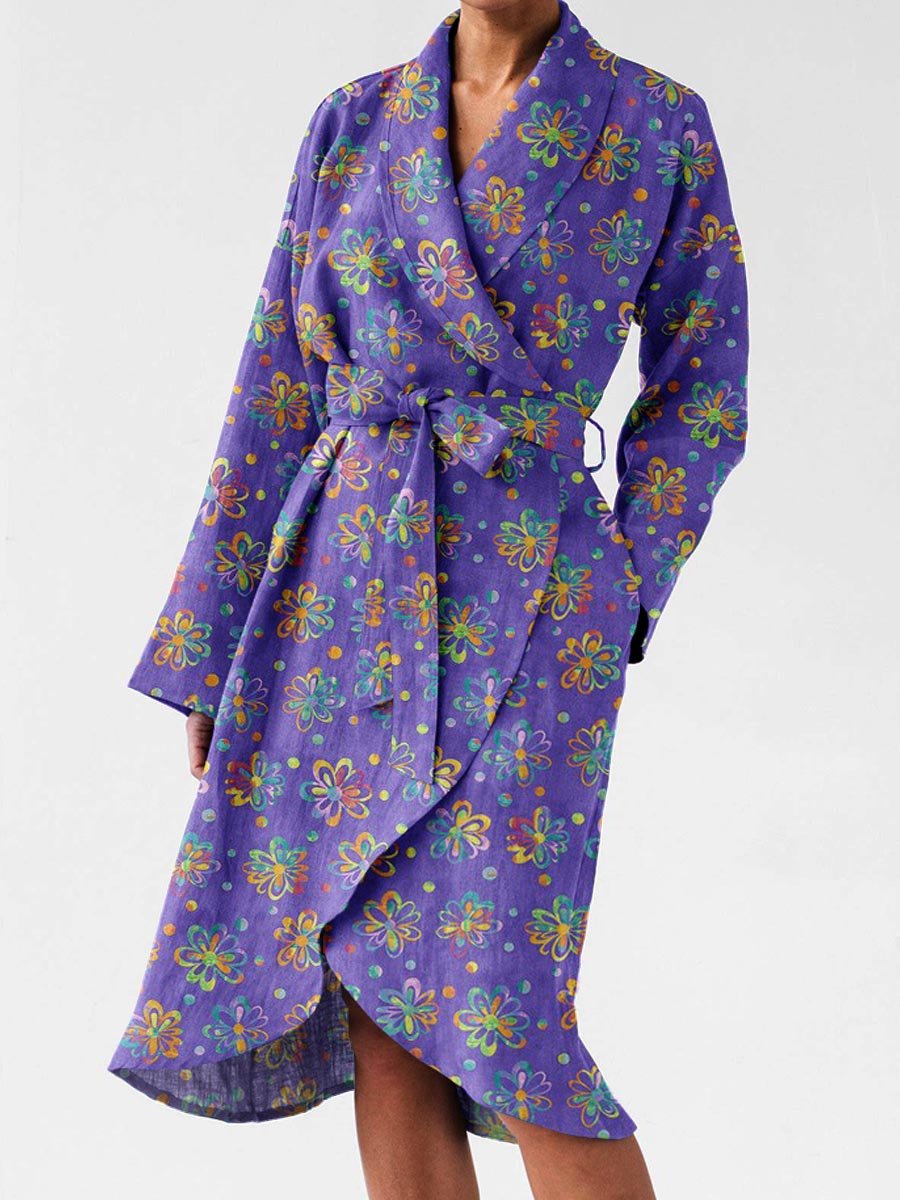 Women's Classic Cotton Floral Pattern Linen House Robe