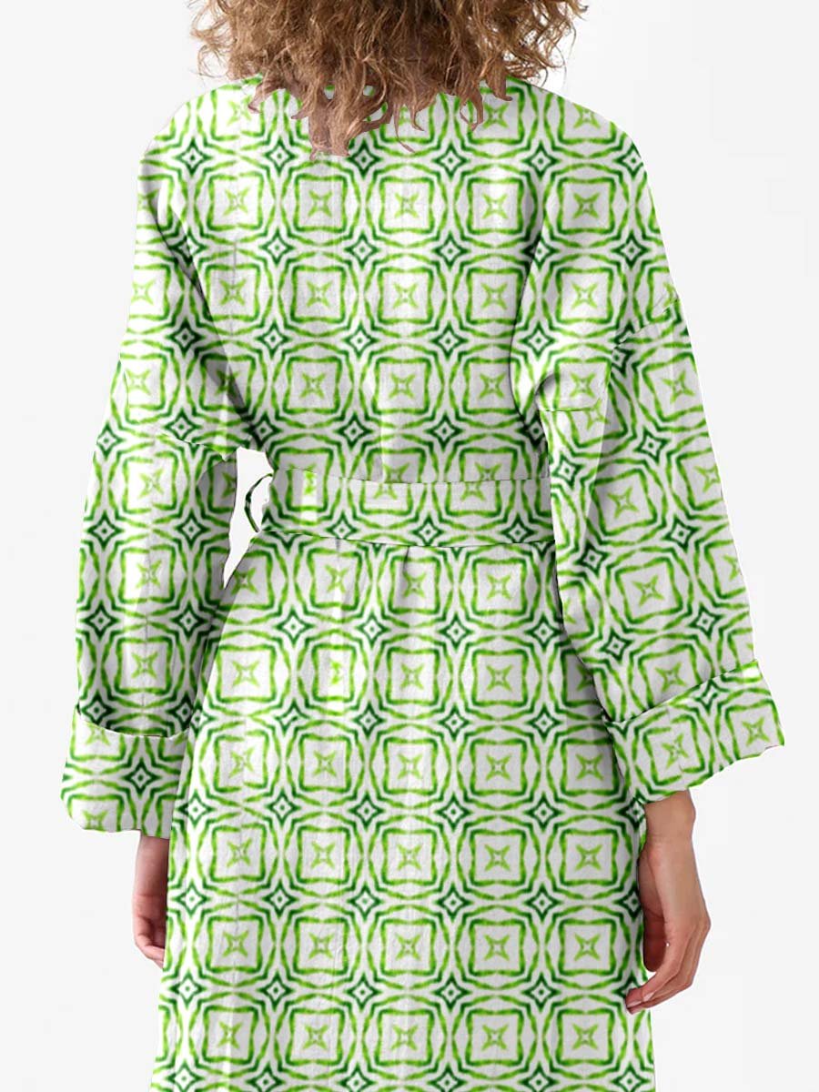 Women's Classic Cotton Geometric Color Pattern Linen Lounge Robe