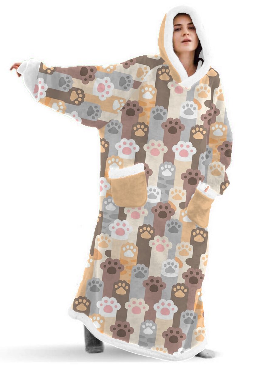 Women's Animal Cute Paw Print Home Plush Nightdress