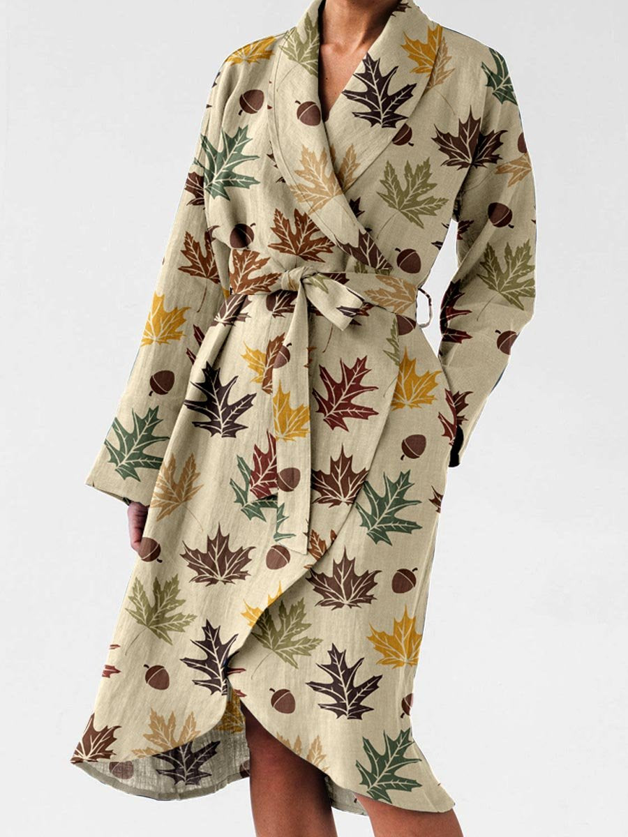 Women's Classic Maple Leaf Pattern Linen Lounge Robe