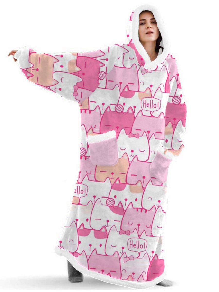 Women's Christmas Cat Print Casual Long sleeve Hooded Blanket