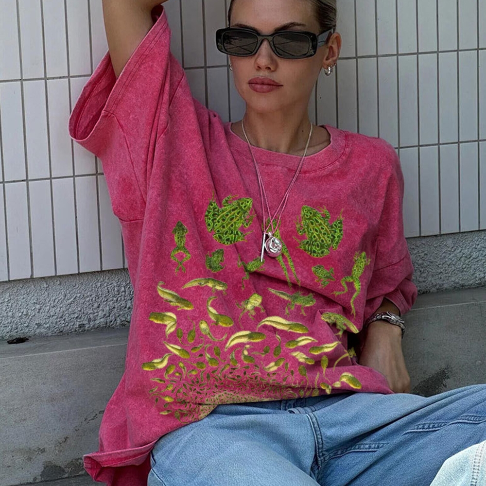 Unisex Sardines Printed Casual Washed T-shirt