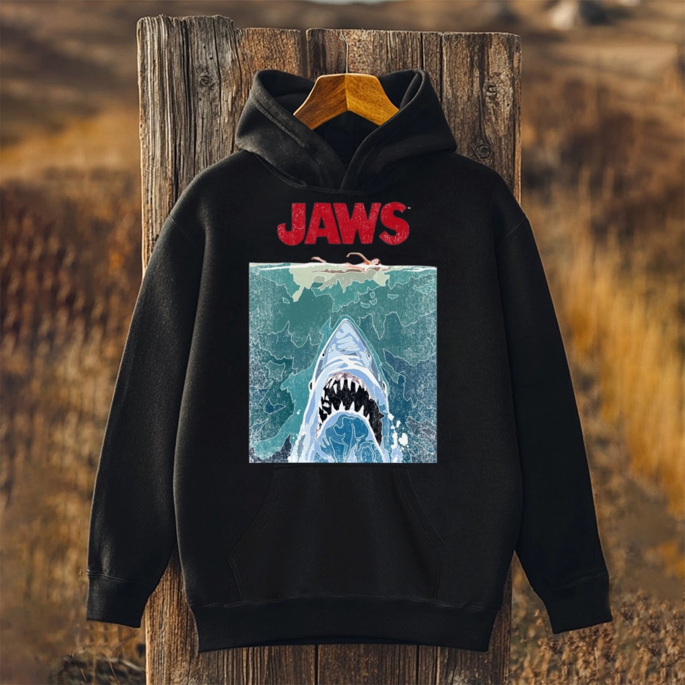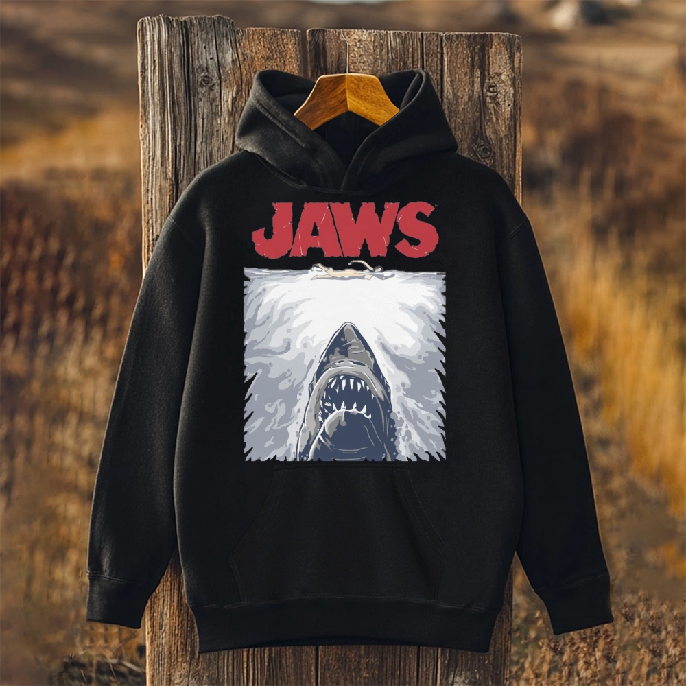 Unisex Jaws Printed Long Sleeve Hoodie