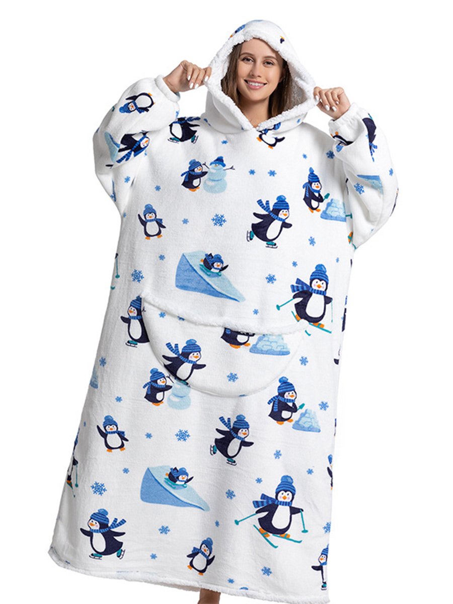 Animal and Fruit Print Flannel Pullover Cartoon Hooded Robe