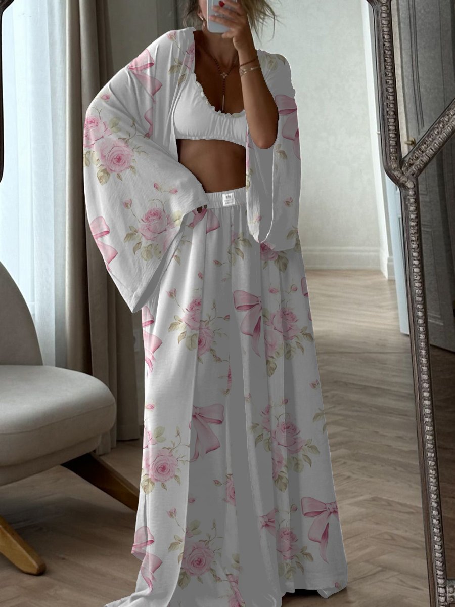 Ladies Pink Bow Flower Lounge Suit