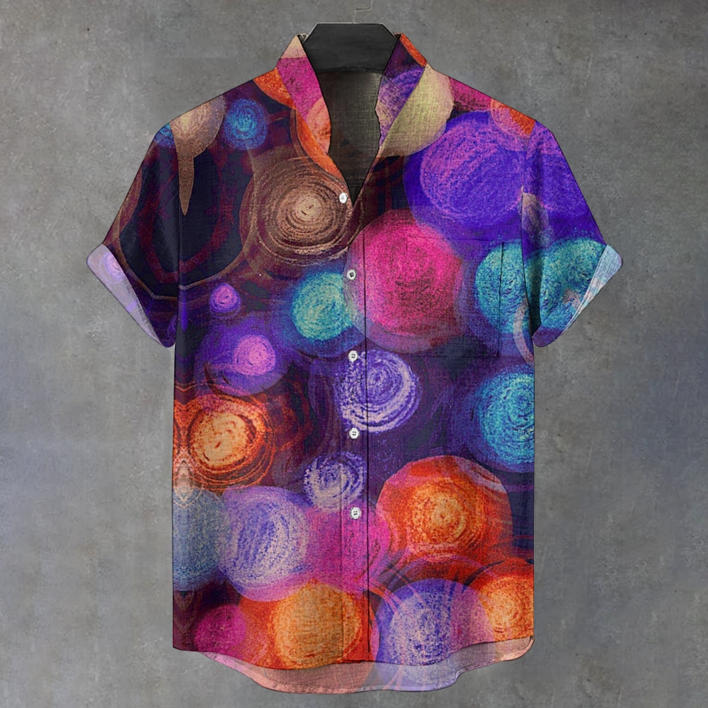 Men's Stand Collar Colorful Dream Spots Art Printed Short Sleeve Shirt