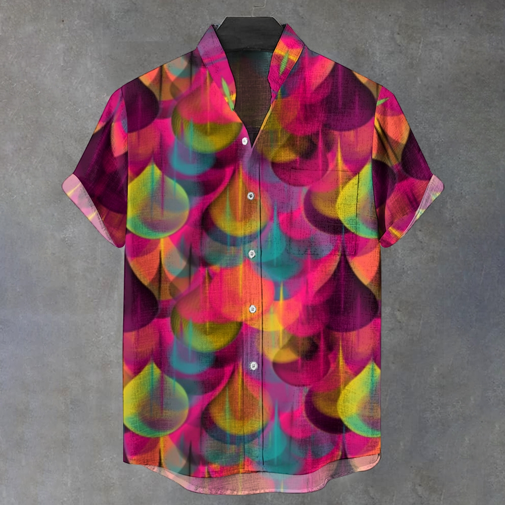 Men's Stand Collar Colorful Fantasy Patterns Printed Short Sleeve Shirt