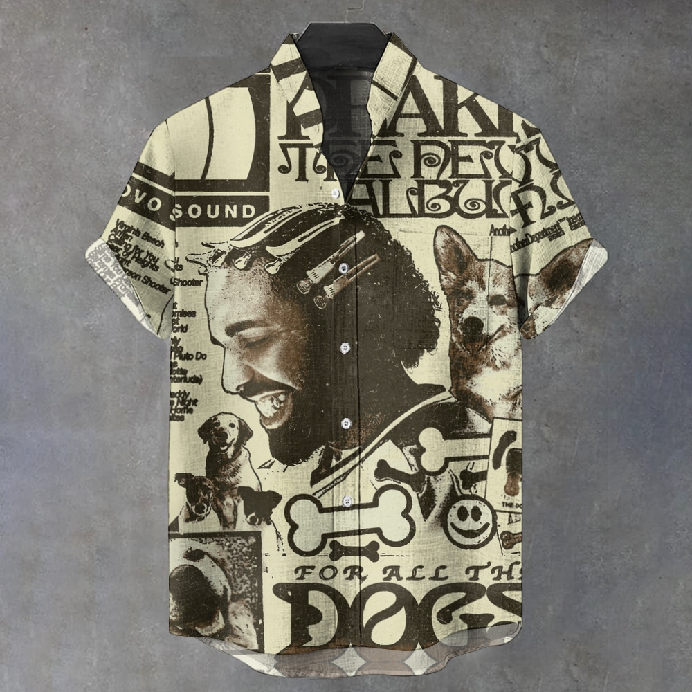 Men's Stand Collar DOGS WILL BE DOGS Printed Short Sleeve Shirt
