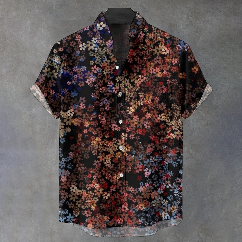 Men's Stand Collar Floral Vintage Art Print Casual 100% Cotton Shirt